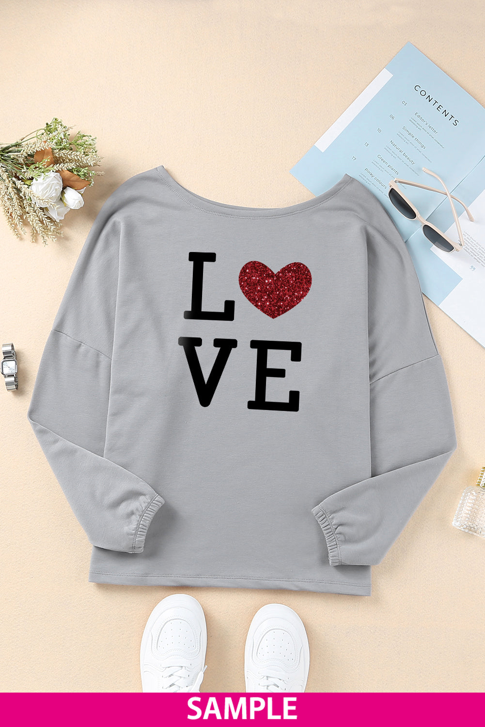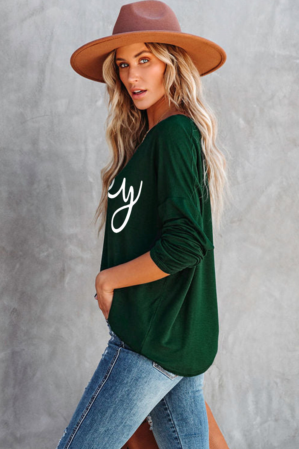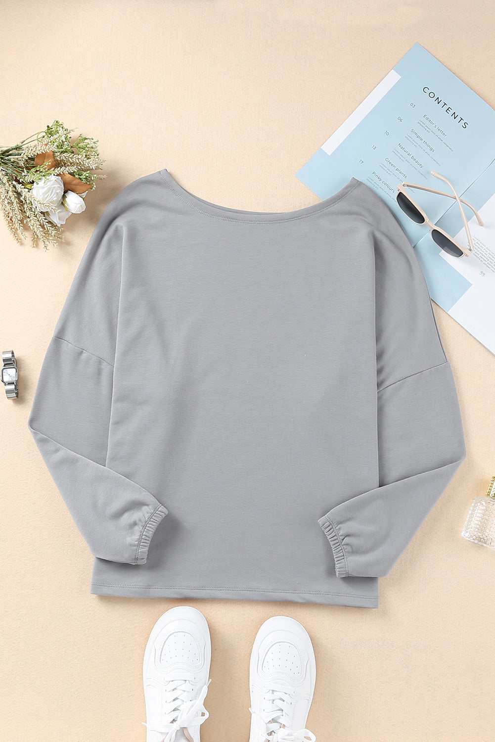- Un essentiel de la garde-robe, le haut à manches longues uni présente une large encolure