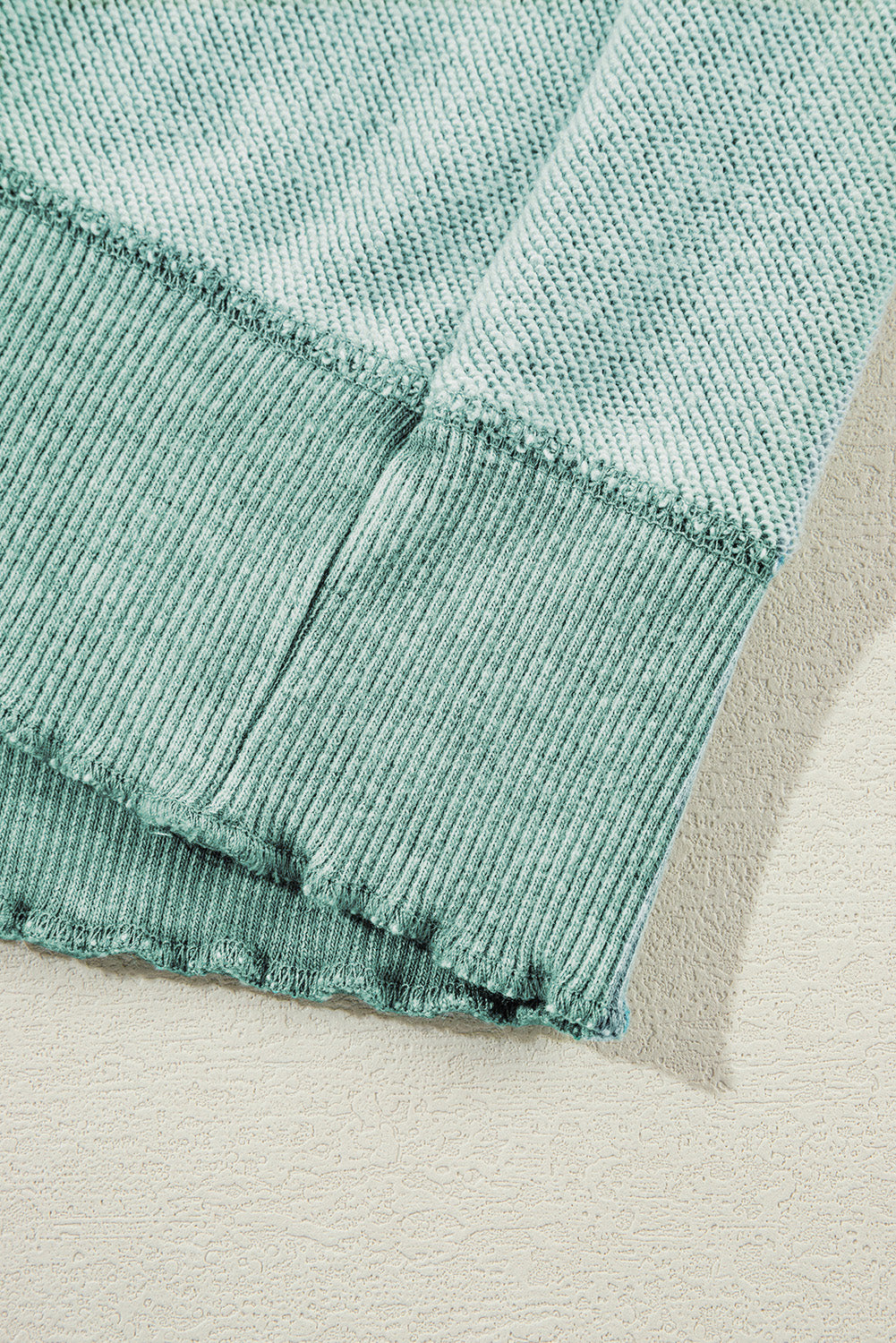 Sweat-shirt raglan bleu minéral en maille gaufrée à coutures apparentes