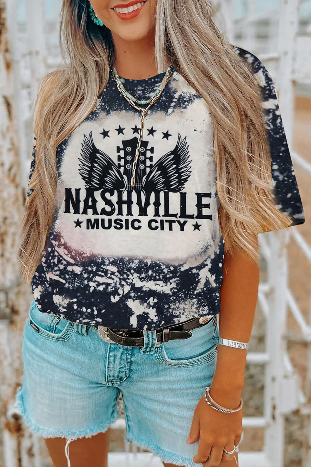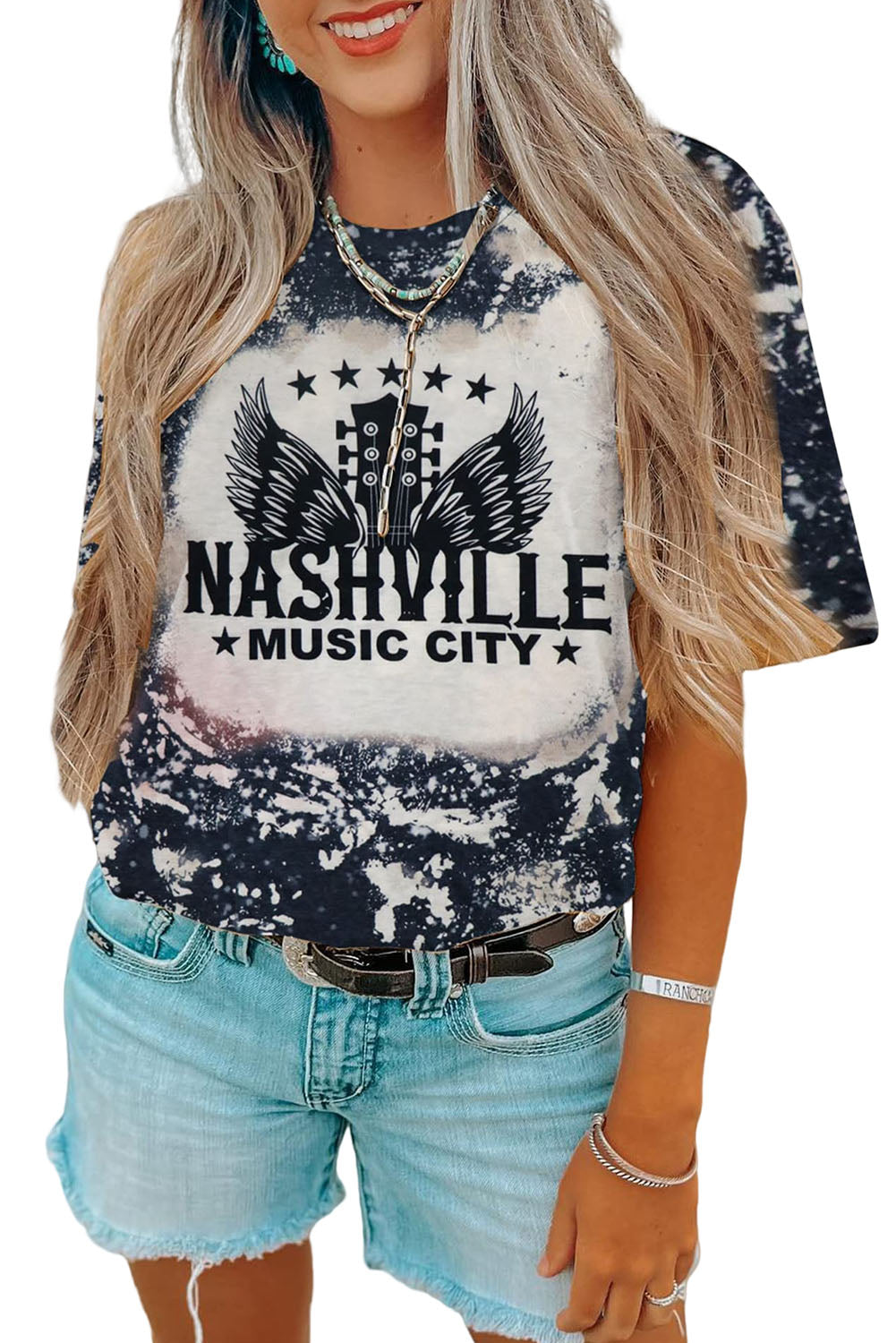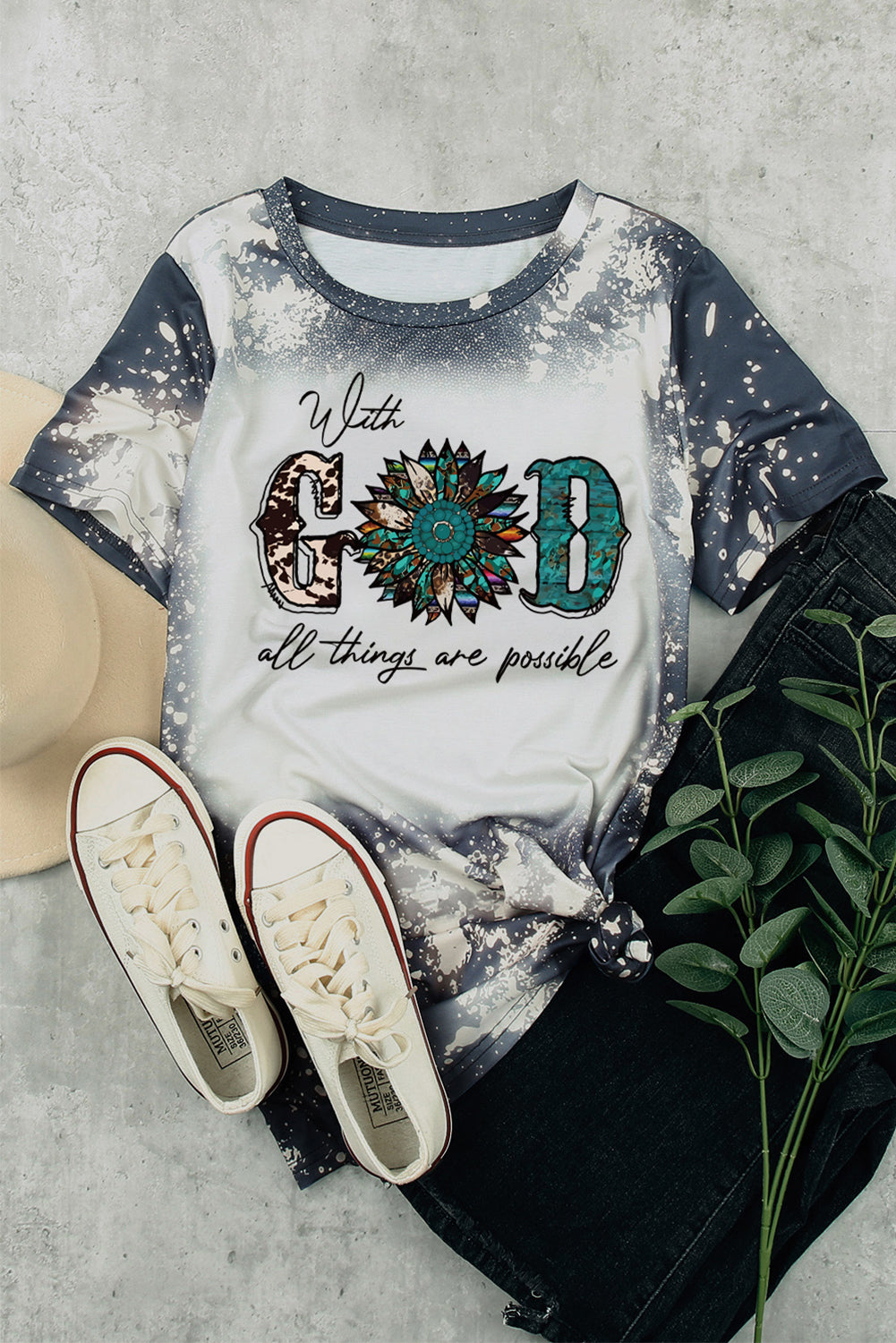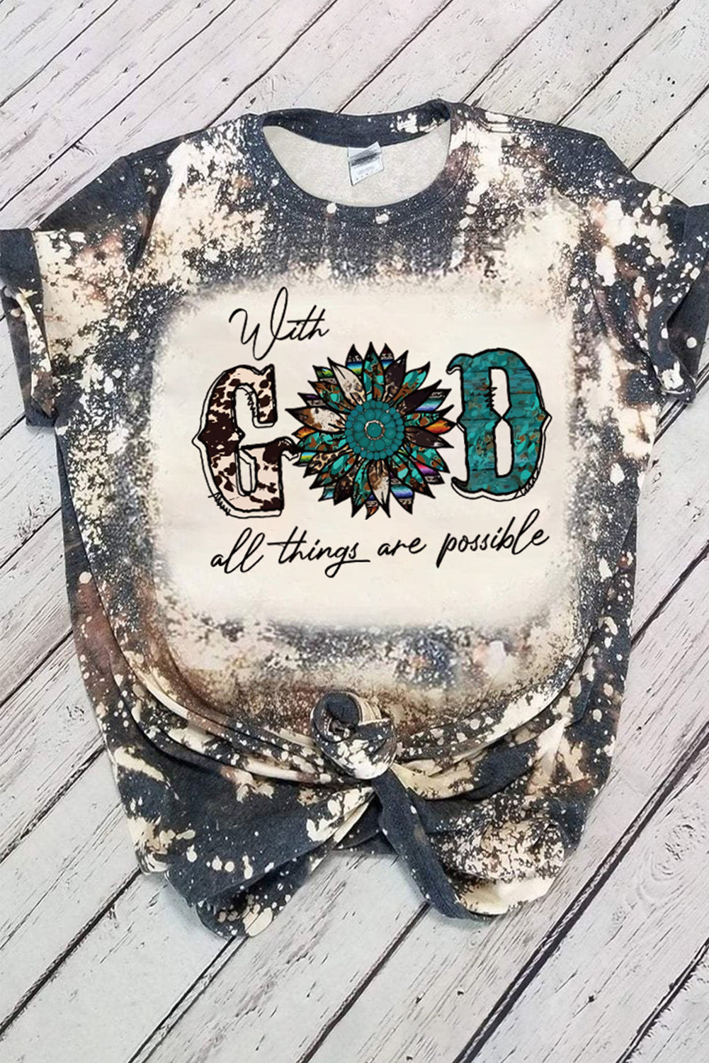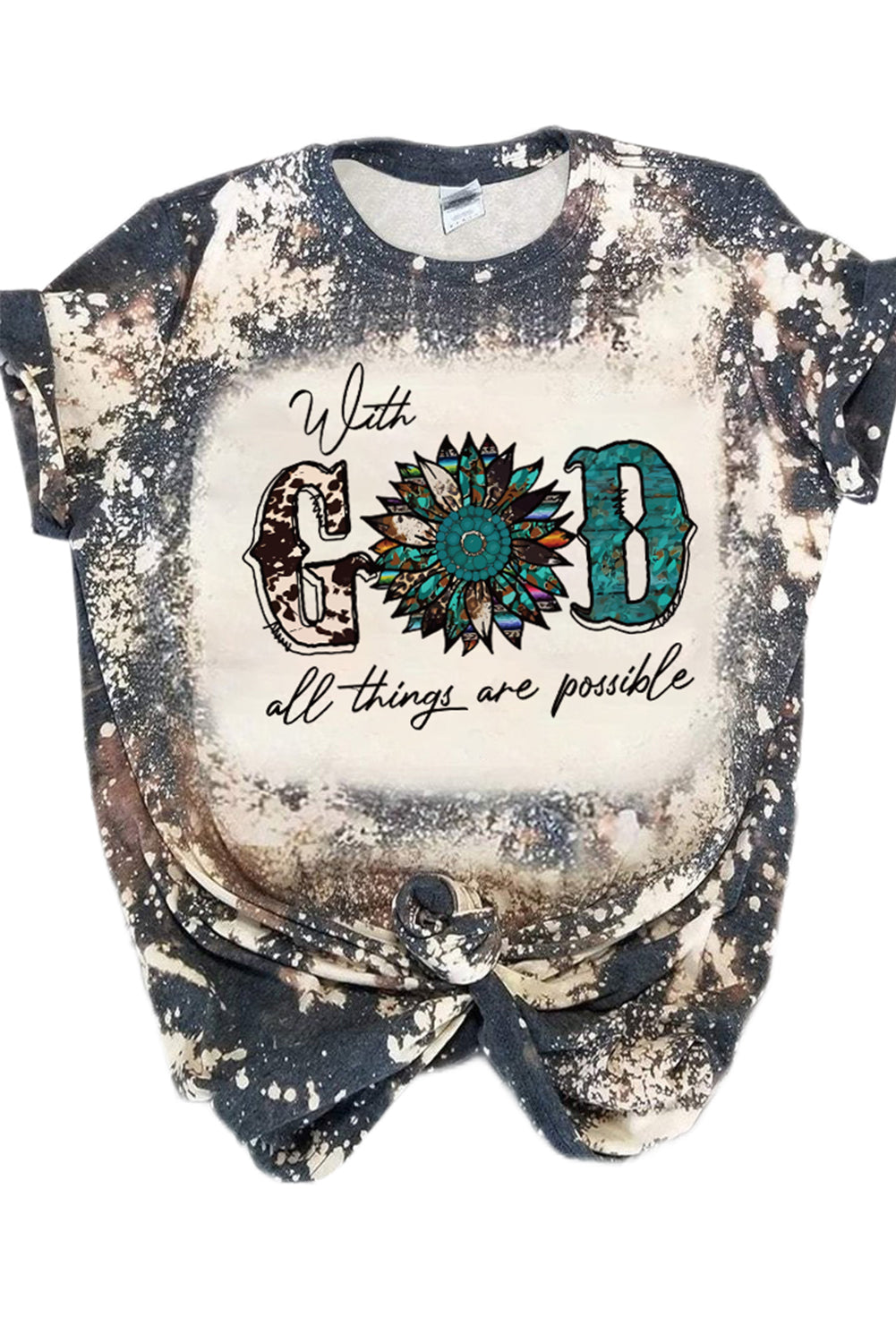 Haut à manches courtes multicolore à imprimé léopard et lettres LIGHT