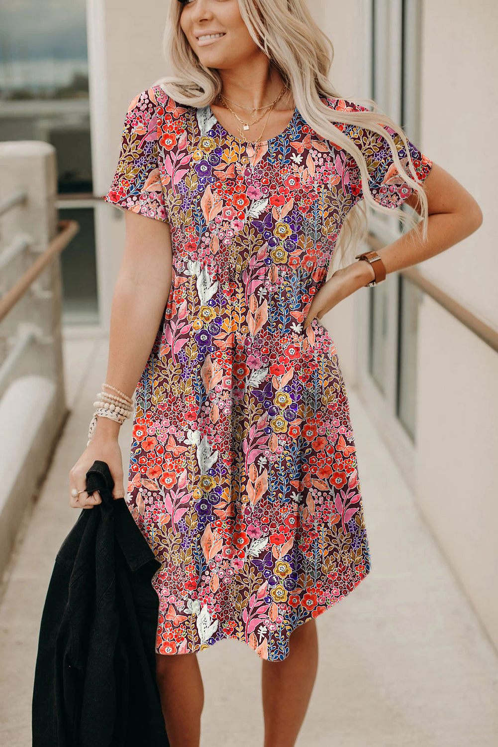 Chemisier à manches bouffantes et motifs floraux multicolores