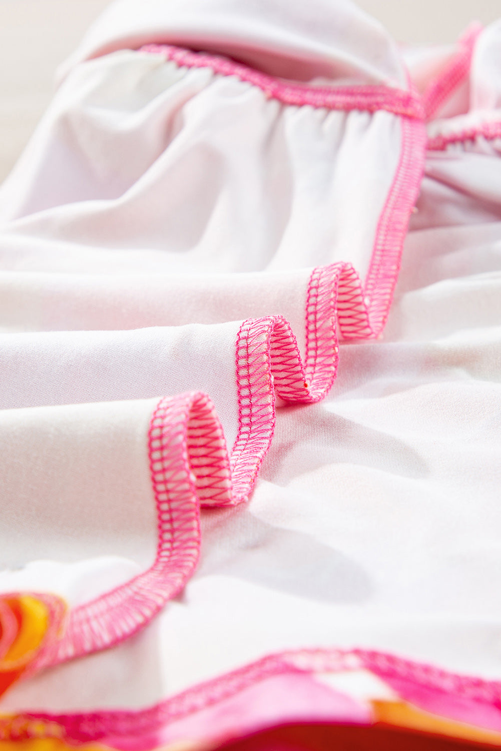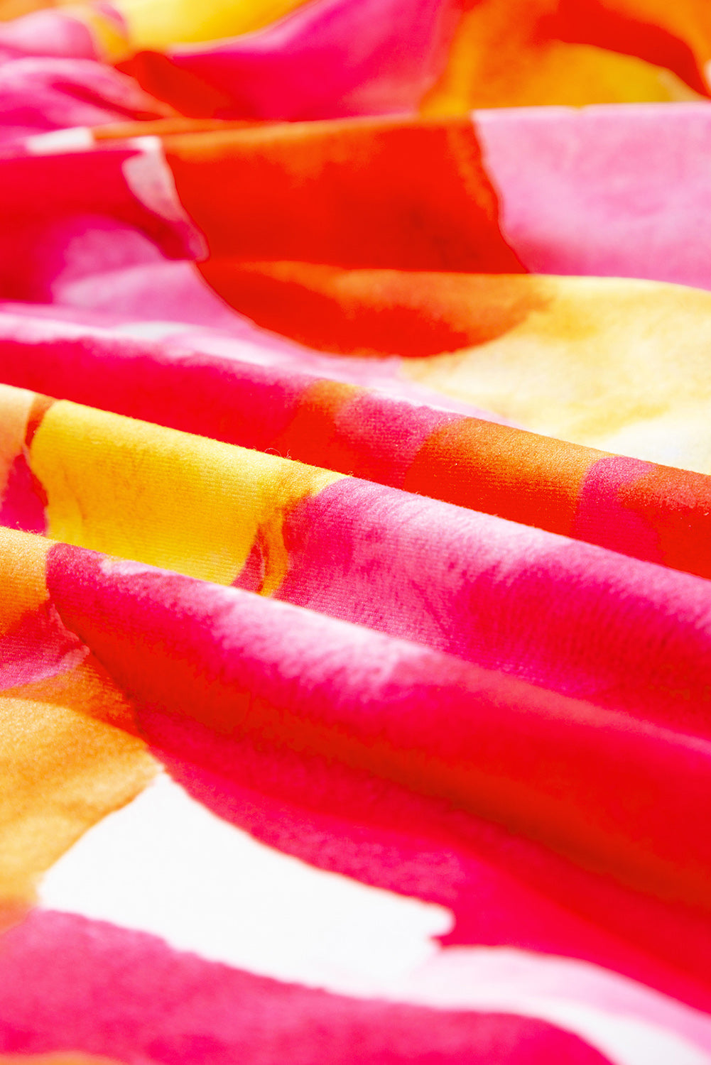 Chemisier babydoll orange à imprimé abstrait, manches 3/4, col en V et volants