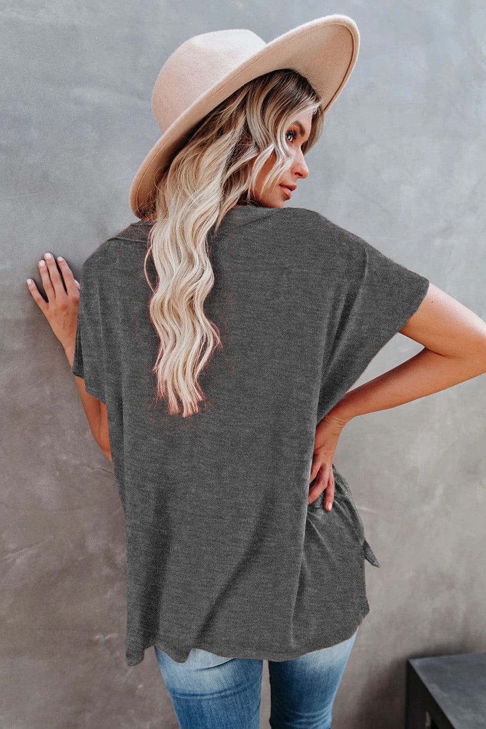 •Un décolleté en V, des manches courtes et des fentes latérales