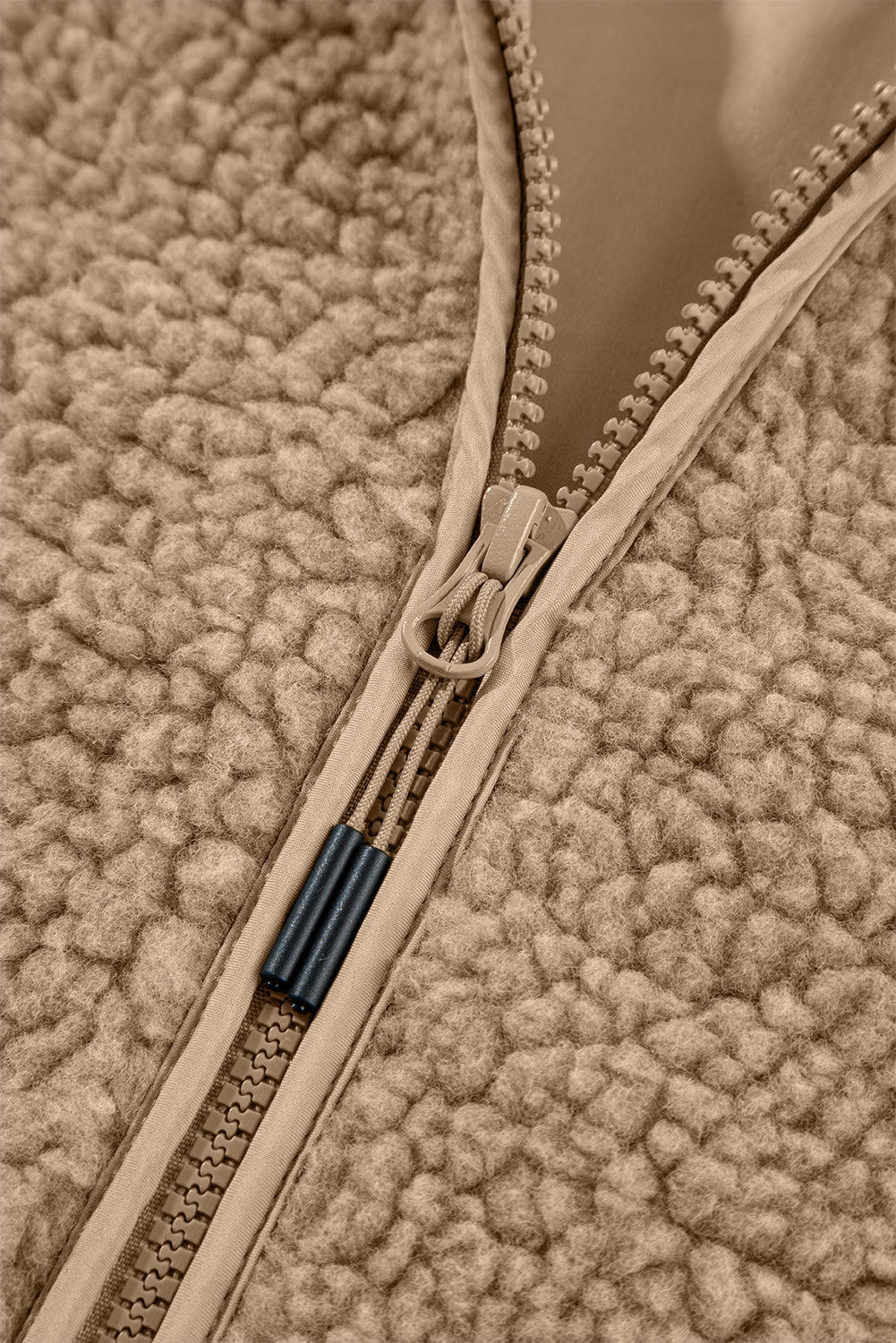 Veste polaire kaki pâle à capuche et poches zippées avec cordon de serrage