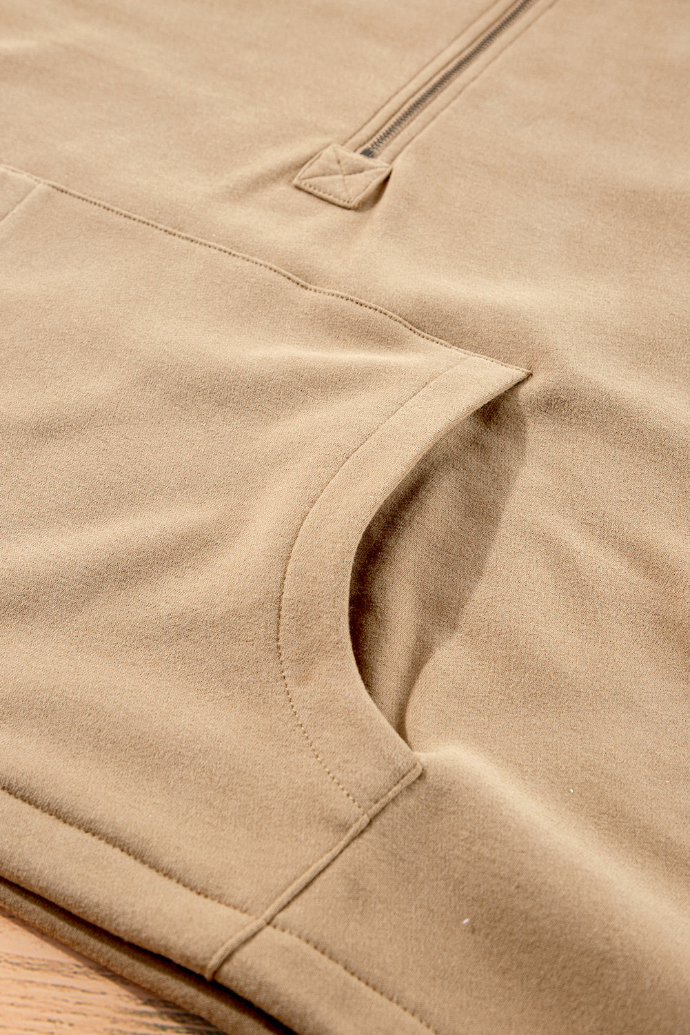 Sweat à capuche ample doublé en polaire parchemin avec poches kangourou à demi-fermeture éclair