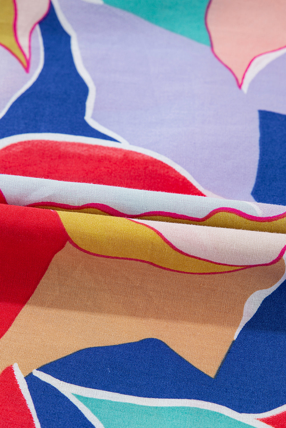 L'imprimé abstrait ajoute une touche moderne et artistique à ce chemisier.
