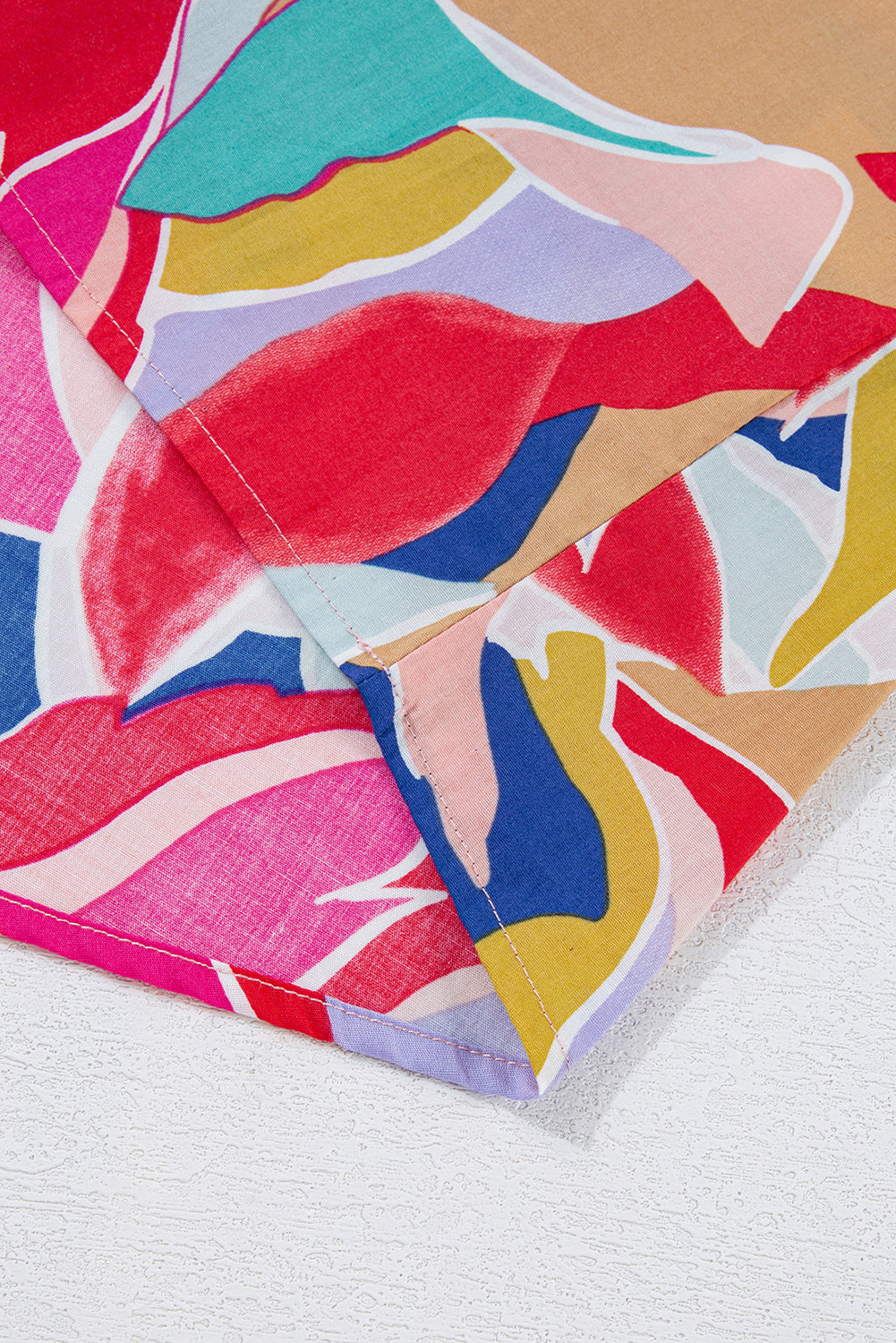 Confectionnée avec soin dans un imprimé abstrait rose audacieux, cette blouse présente des manches volantées et un col V fendu noué pour une allure féminine et moderne. Idéale pour ajouter une touche de couleur et de style à n'importe quelle tenue.