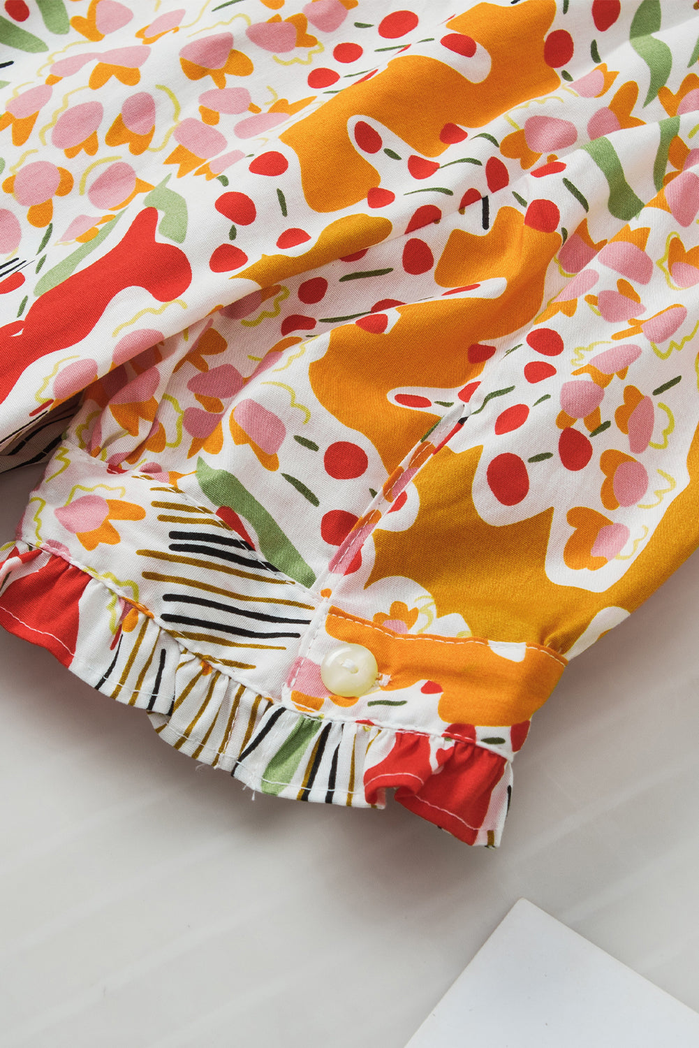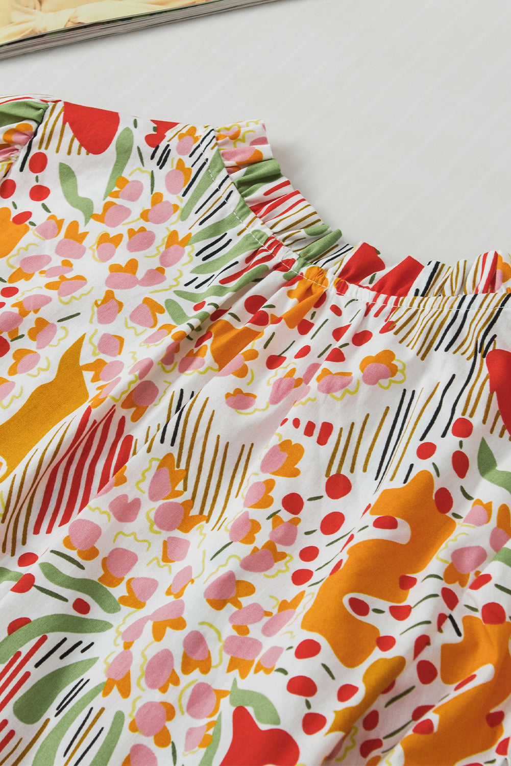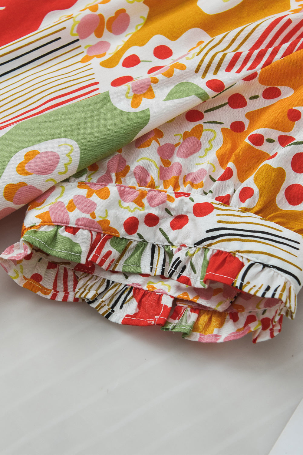 - Il a une encolure fendue, des manches courtes à volants et une coupe ample