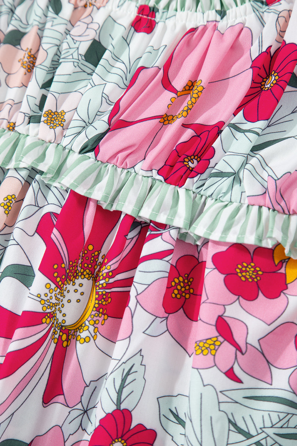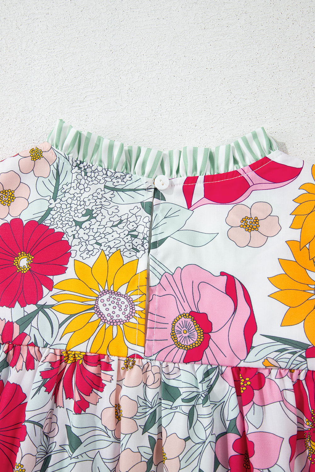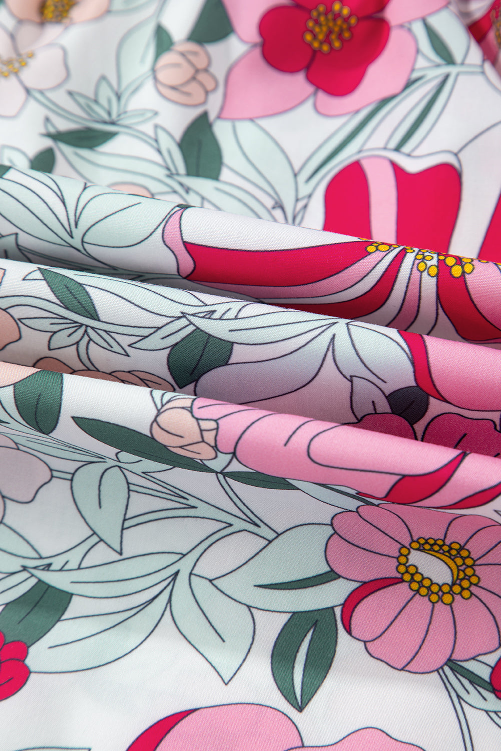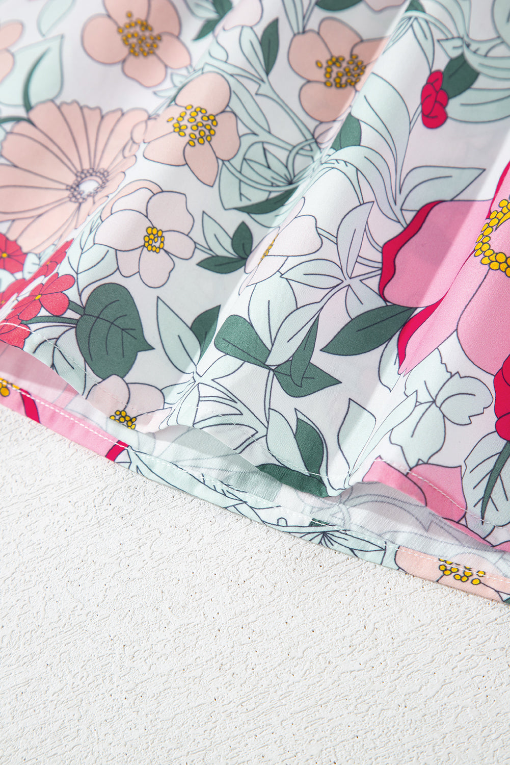 Chemisier à manches courtes à imprimé floral rose et bordure à volants contrastés