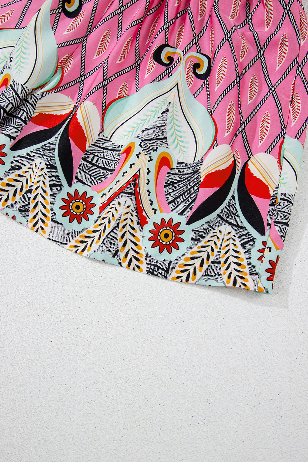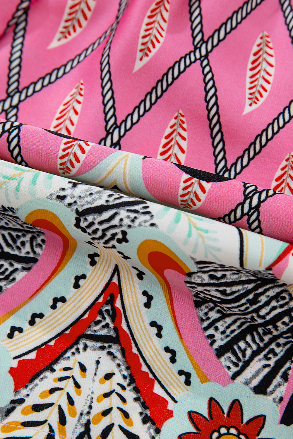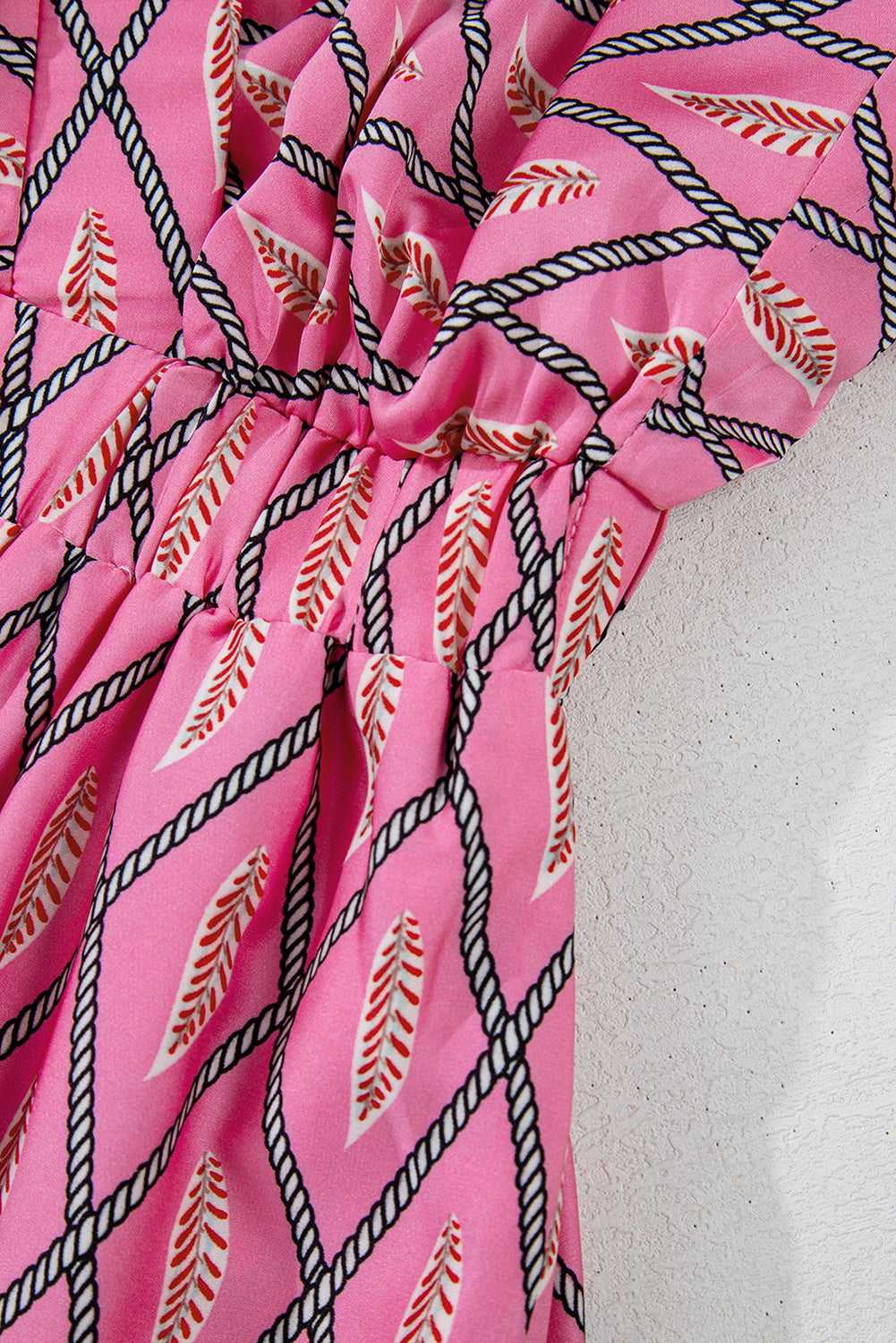 Combinaison taille haute à col en V et imprimé géométrique cachemire rose