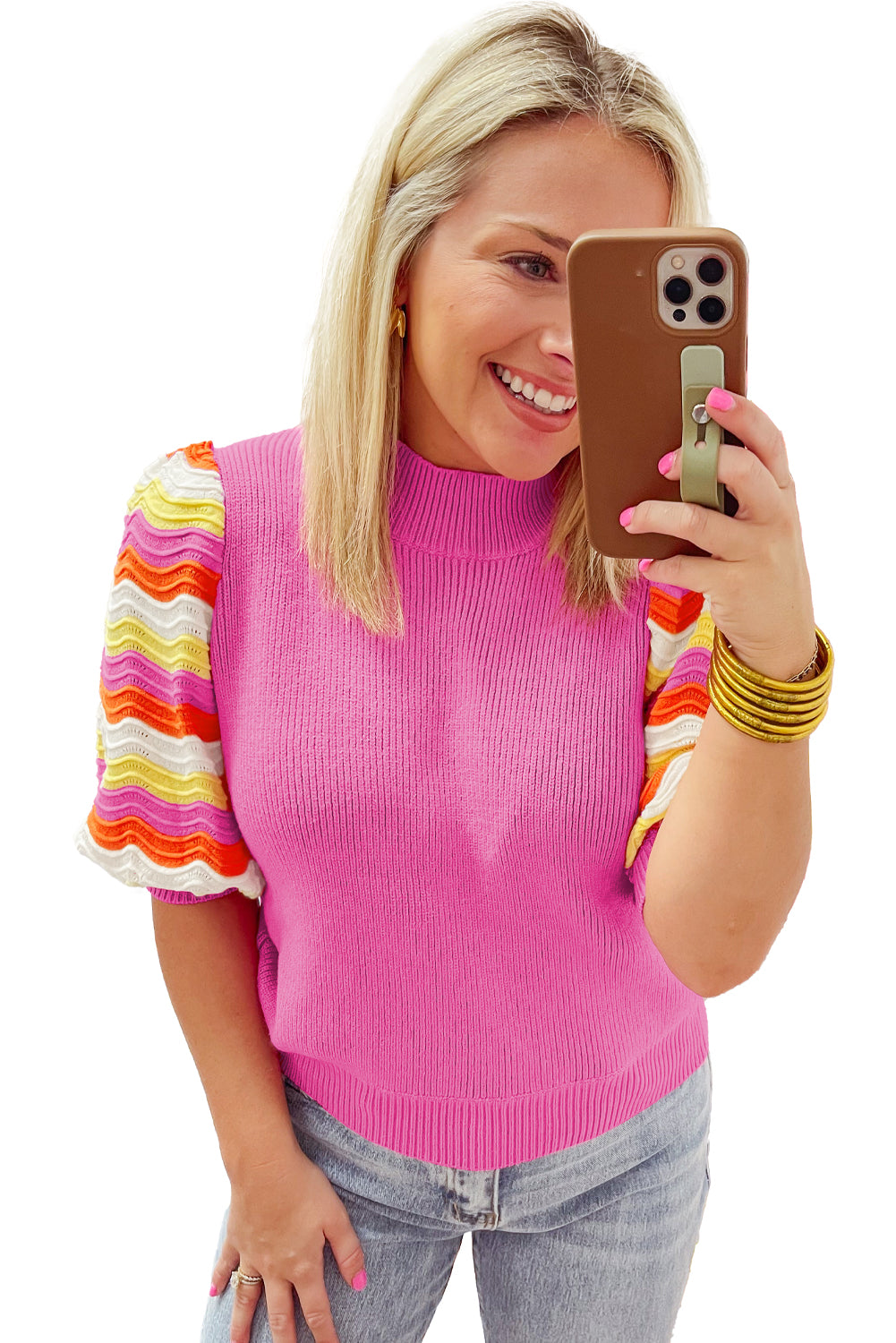 Confectionné avec soin en maille côtelée rose et manches contrastées, ce pull est à la fois élégant et confortable. Profitez d'un mélange parfait de chaleur et de style, idéal en toute occasion. Rehaussez votre garde-robe avec cet incontournable.