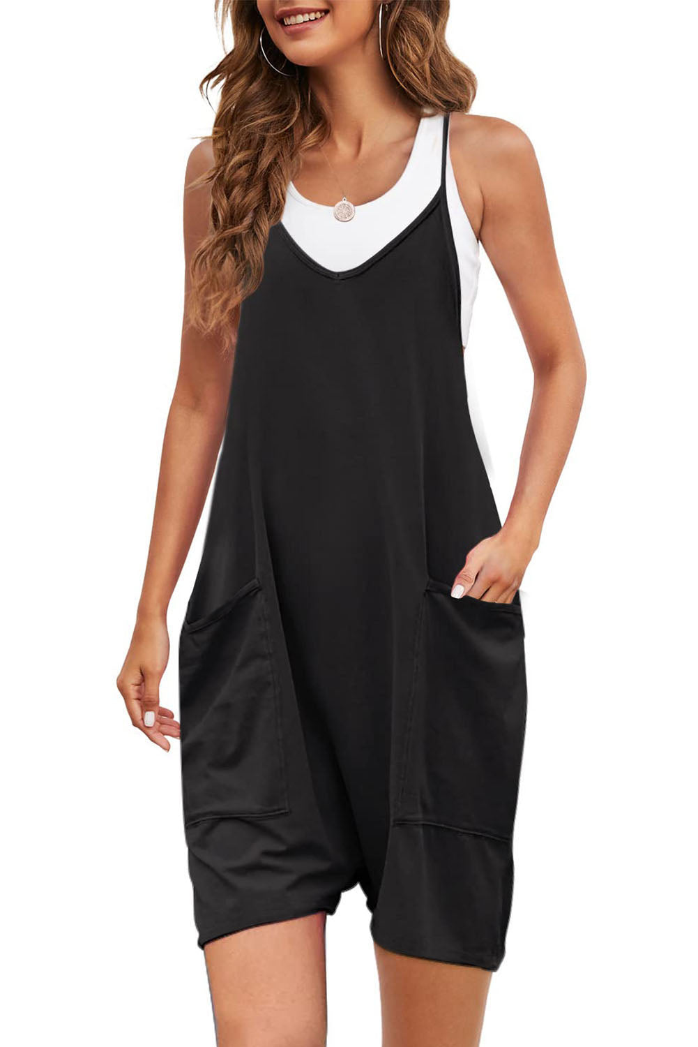 Combinaison droite à bretelles spaghetti réglables et poches