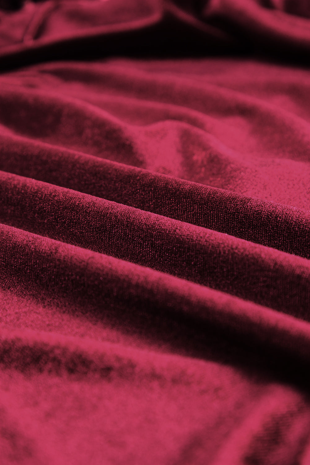 Haut boutonné en velours à manches patchwork et sequins dahlia rouge