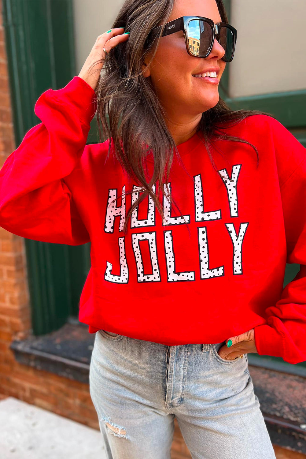 Sweat-shirt de Noël rouge à pois HOLLY JOLLY