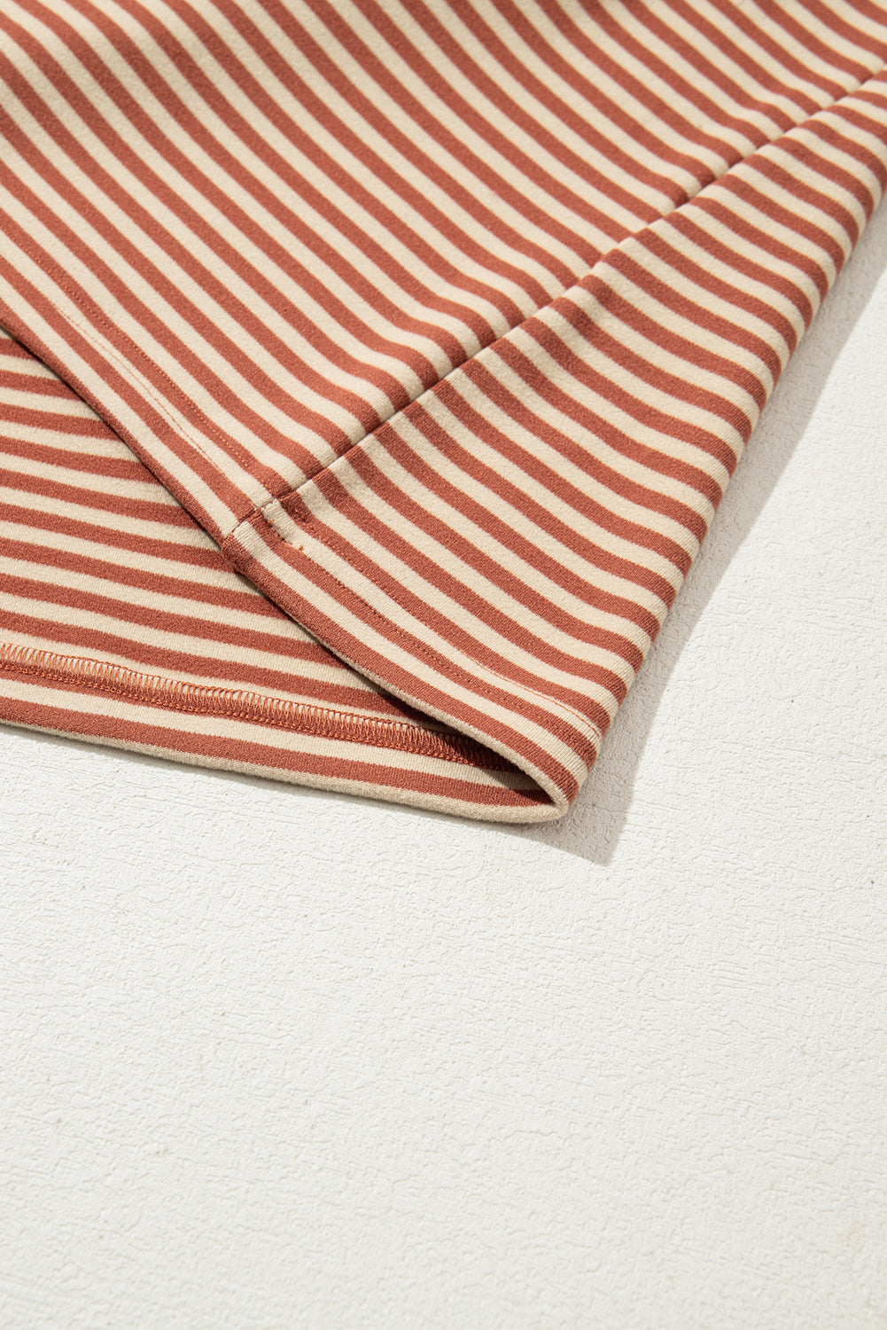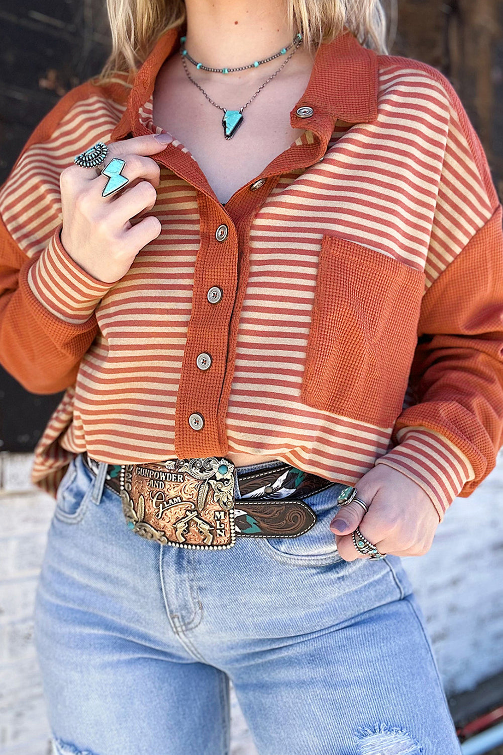 Sweat-shirt boutonné à rayures rouges texturées et épaules tombantes, grande taille