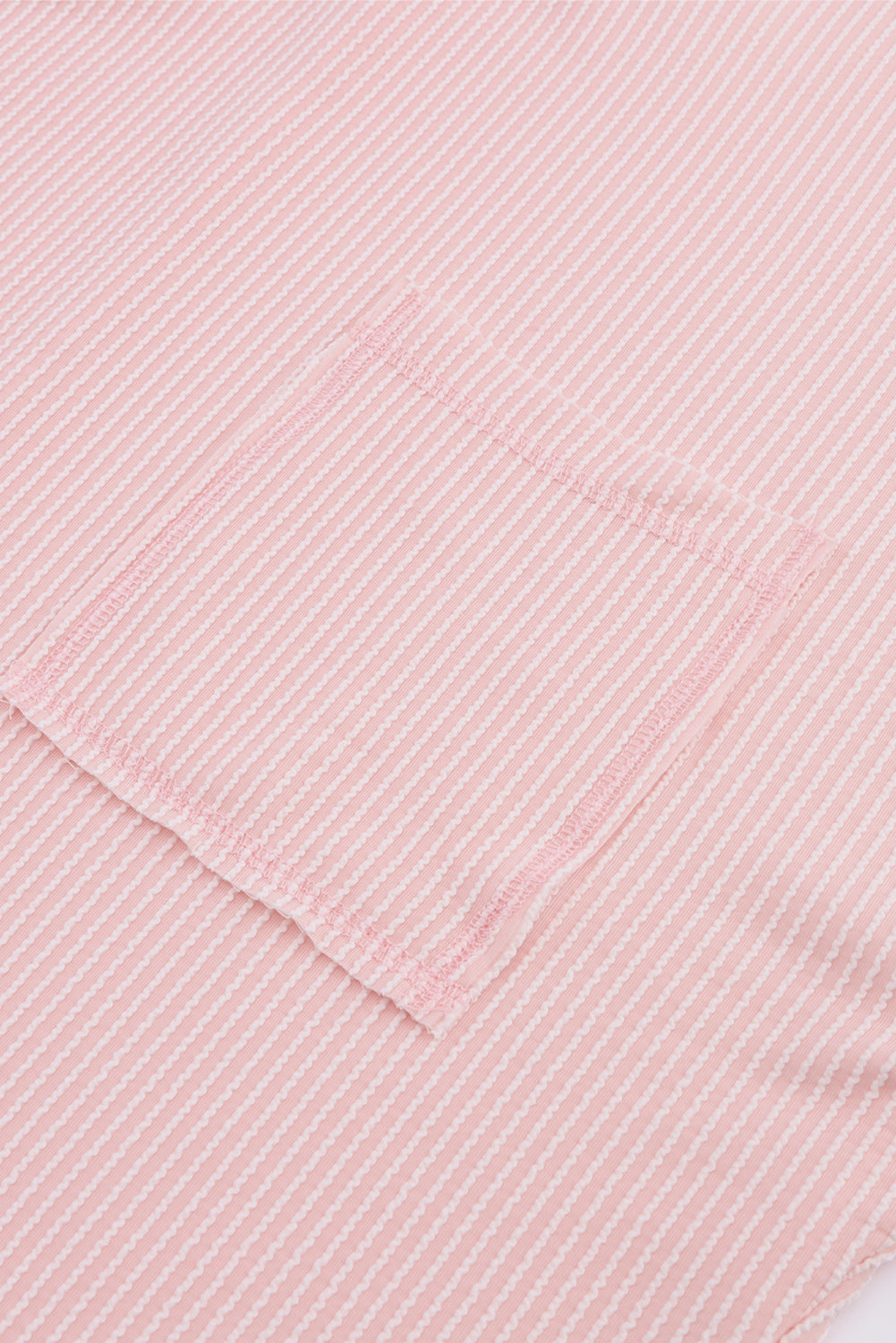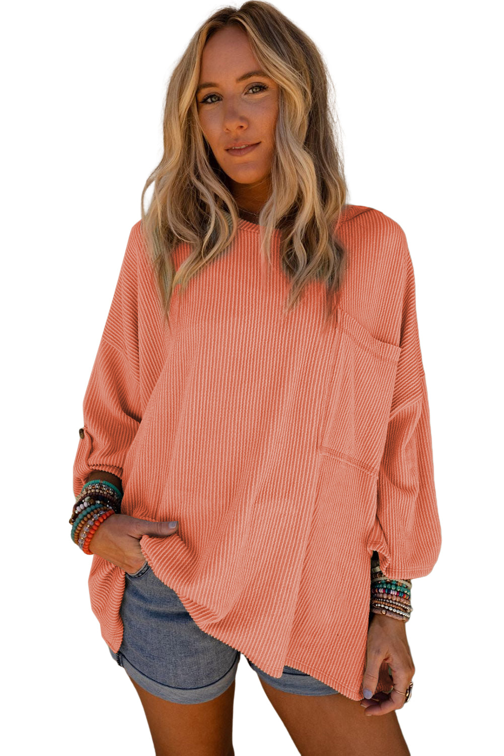 Haut oversize vert côtelé à manches retroussées et poche poitrine