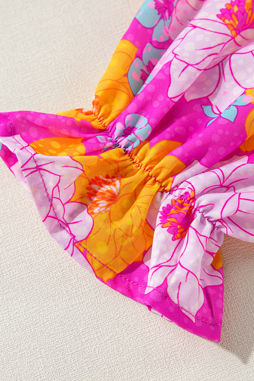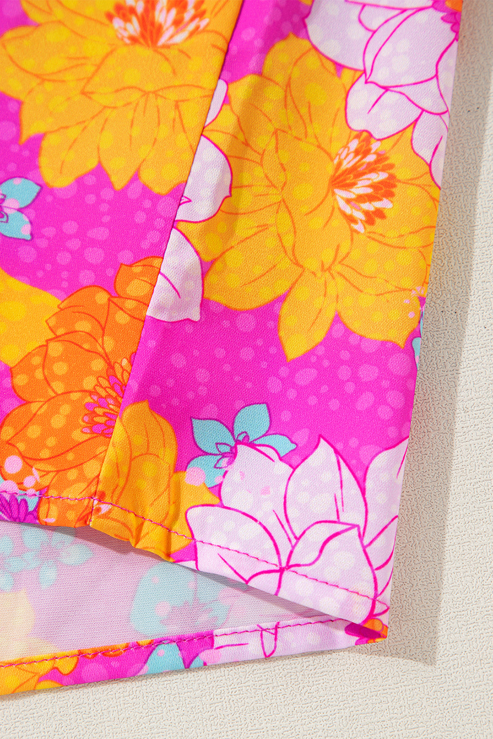 Chemisier à imprimé floral rose, manches volantées et col cranté