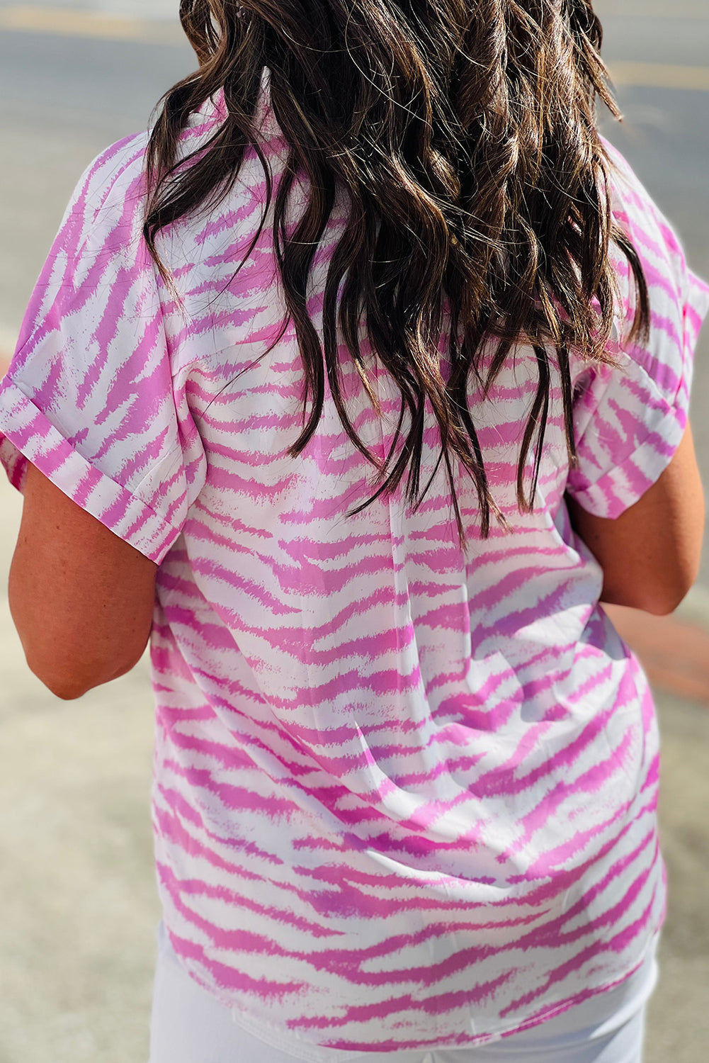 Chemisier à manches courtes et col en V à motif zèbre rose