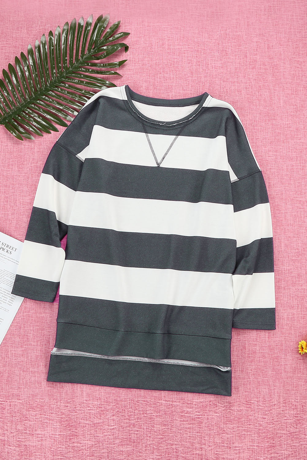 Sweat-shirt oversize décontracté à col rond et fente latérale