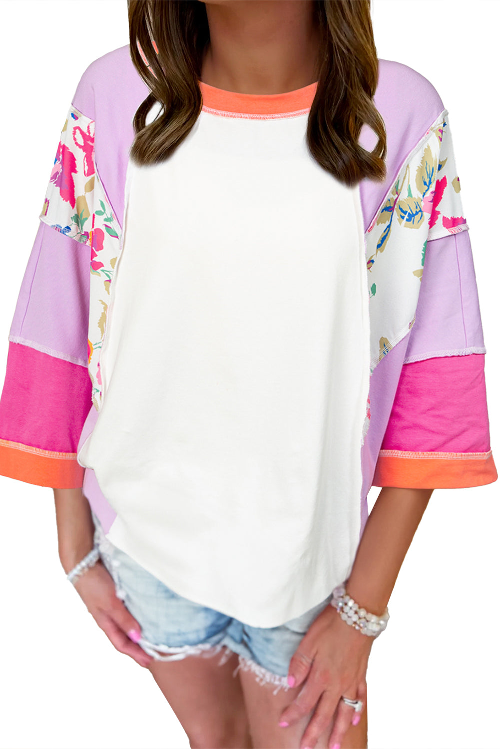 Chemisier décontracté à manches 3/4 et imprimé floral rose Sachet