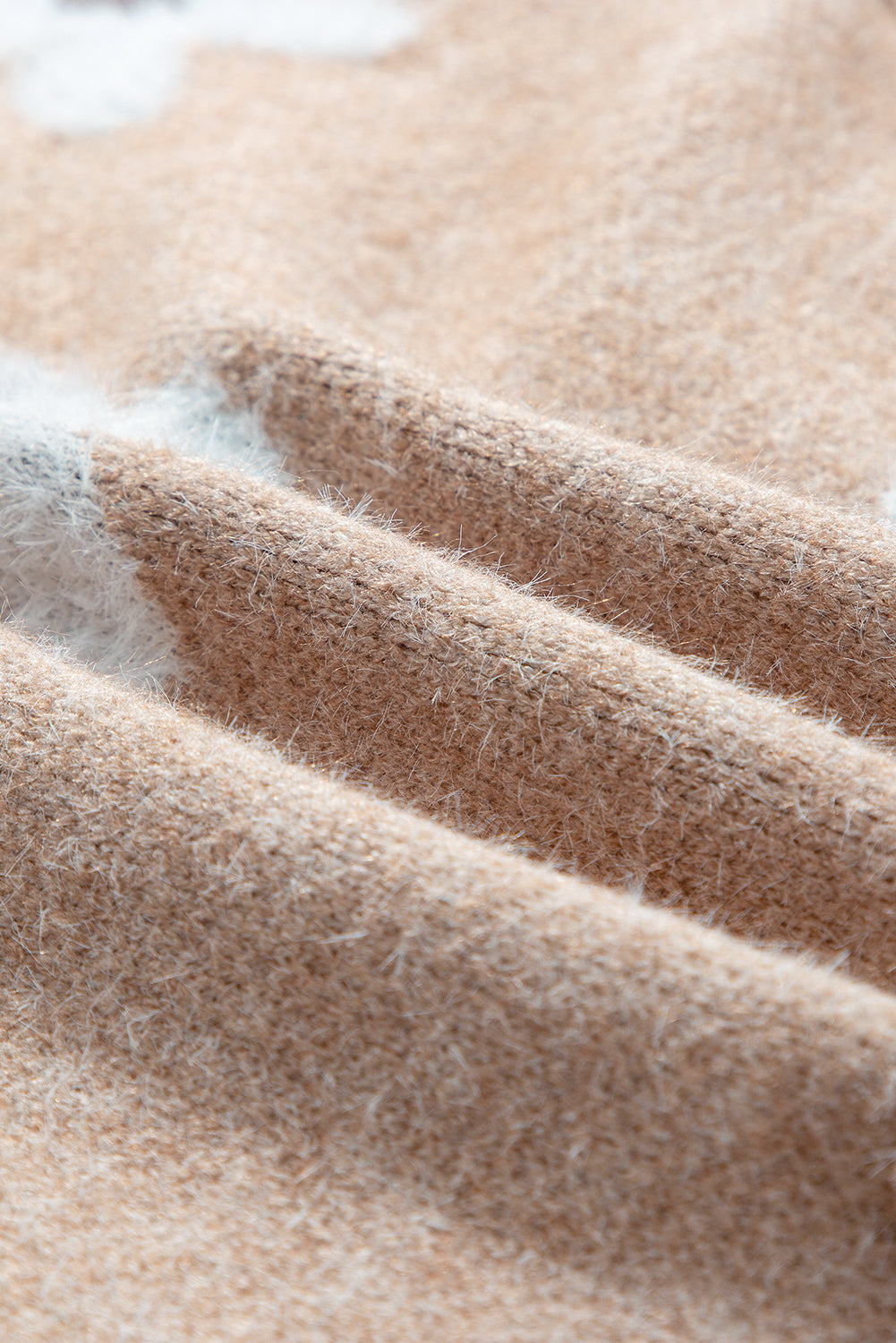 Cardigan boutonné en tricot à col en V et imprimé floral gris fumé