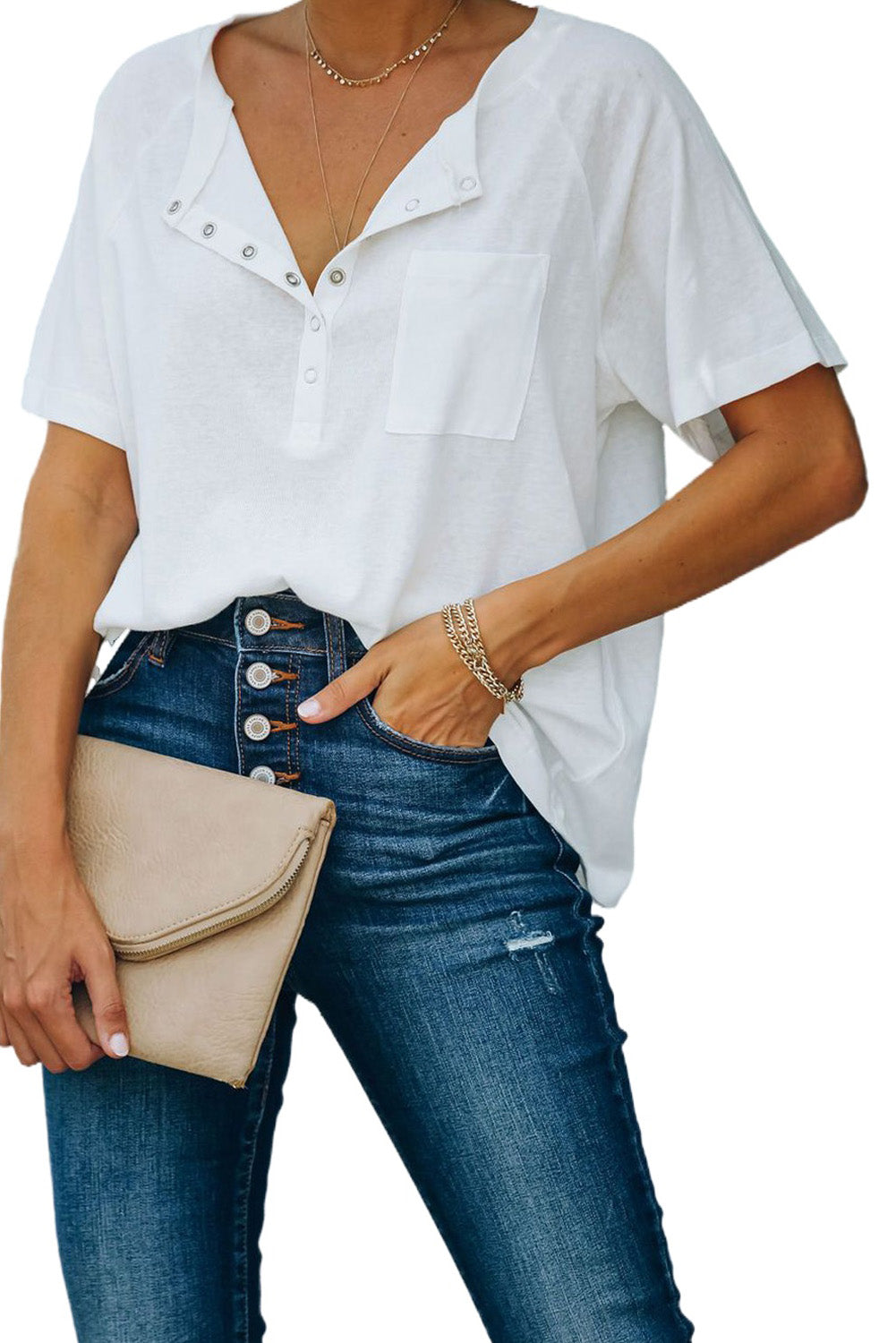 • T-shirts à manches courtes avec boutons-pression et encolure en V pour un look élégant et classique