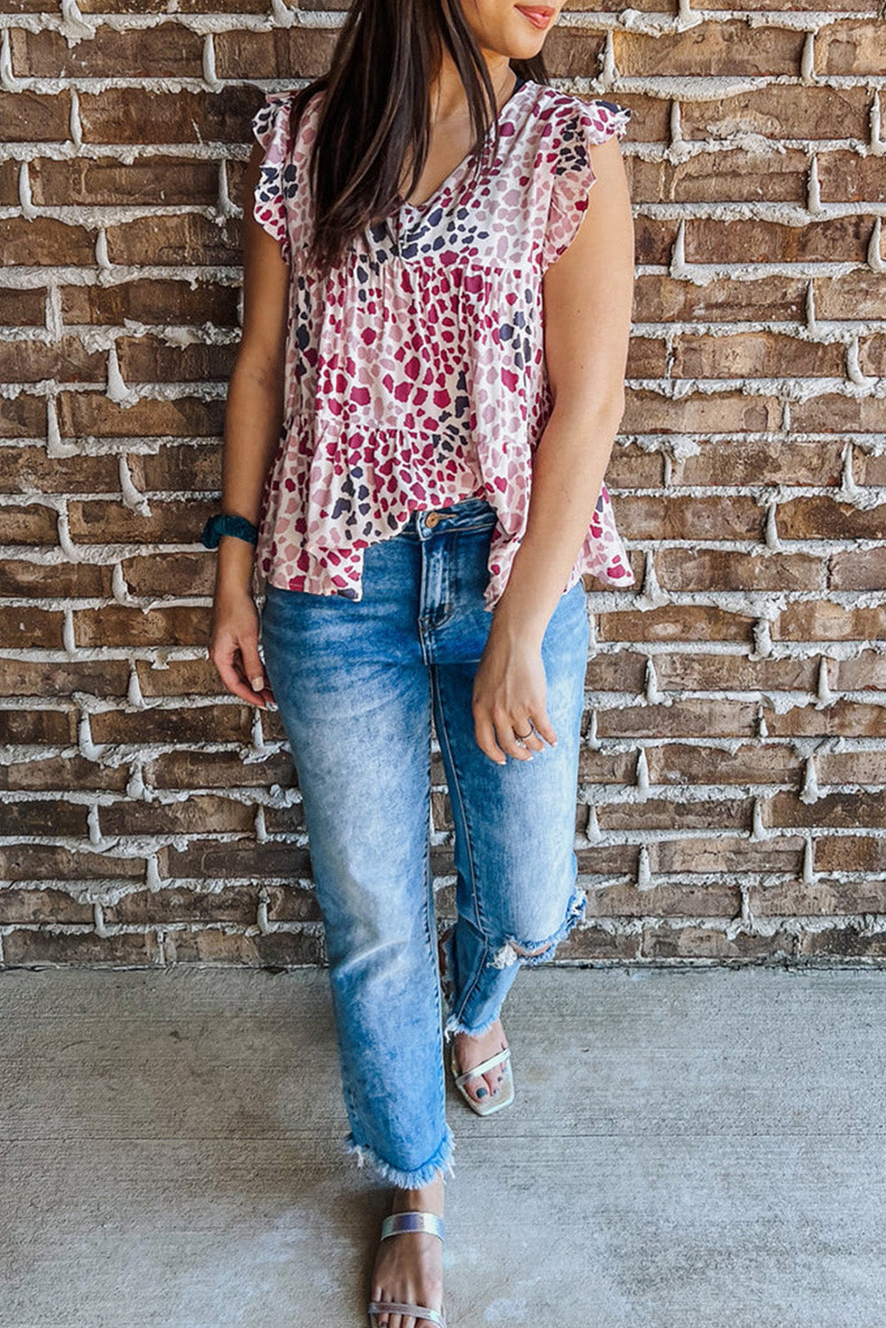 Débardeur à volants et col en V à imprimé pois