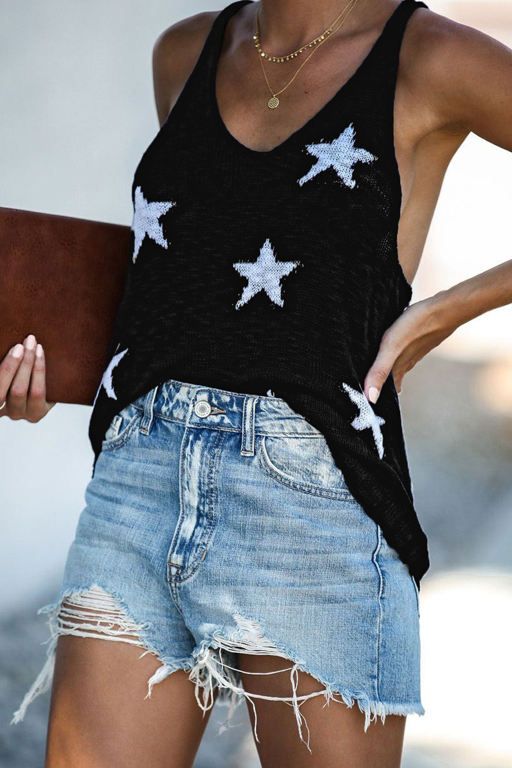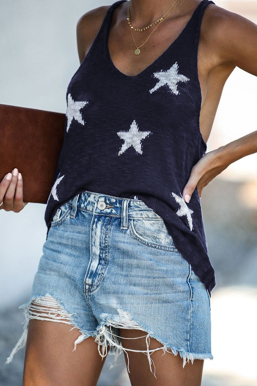 Débardeur à col en V et dos nageur à imprimé étoiles
