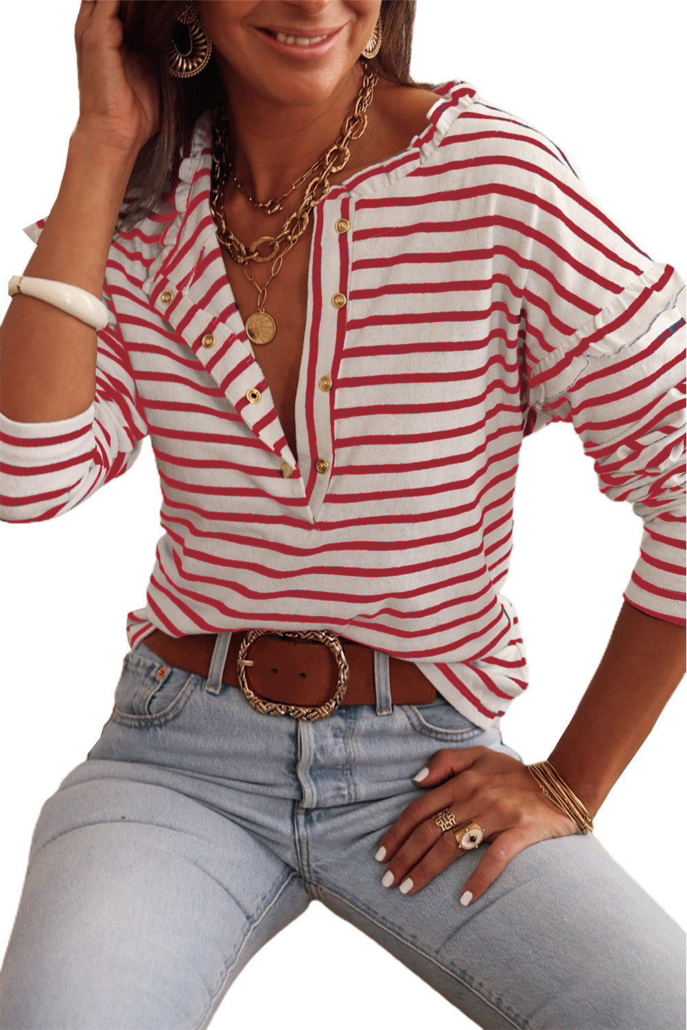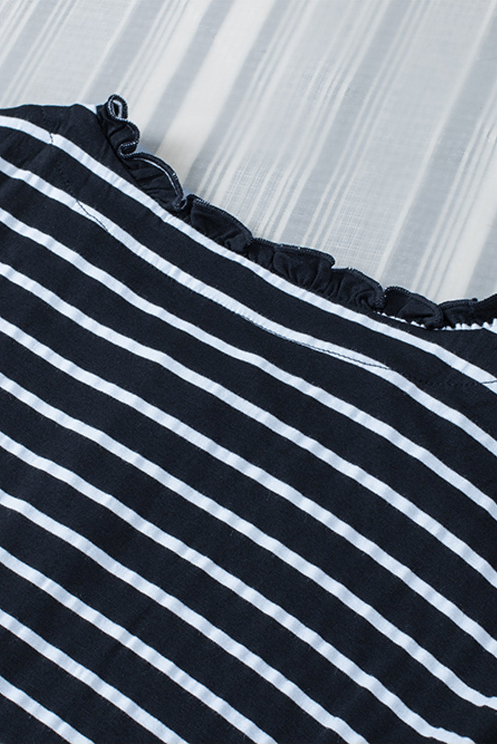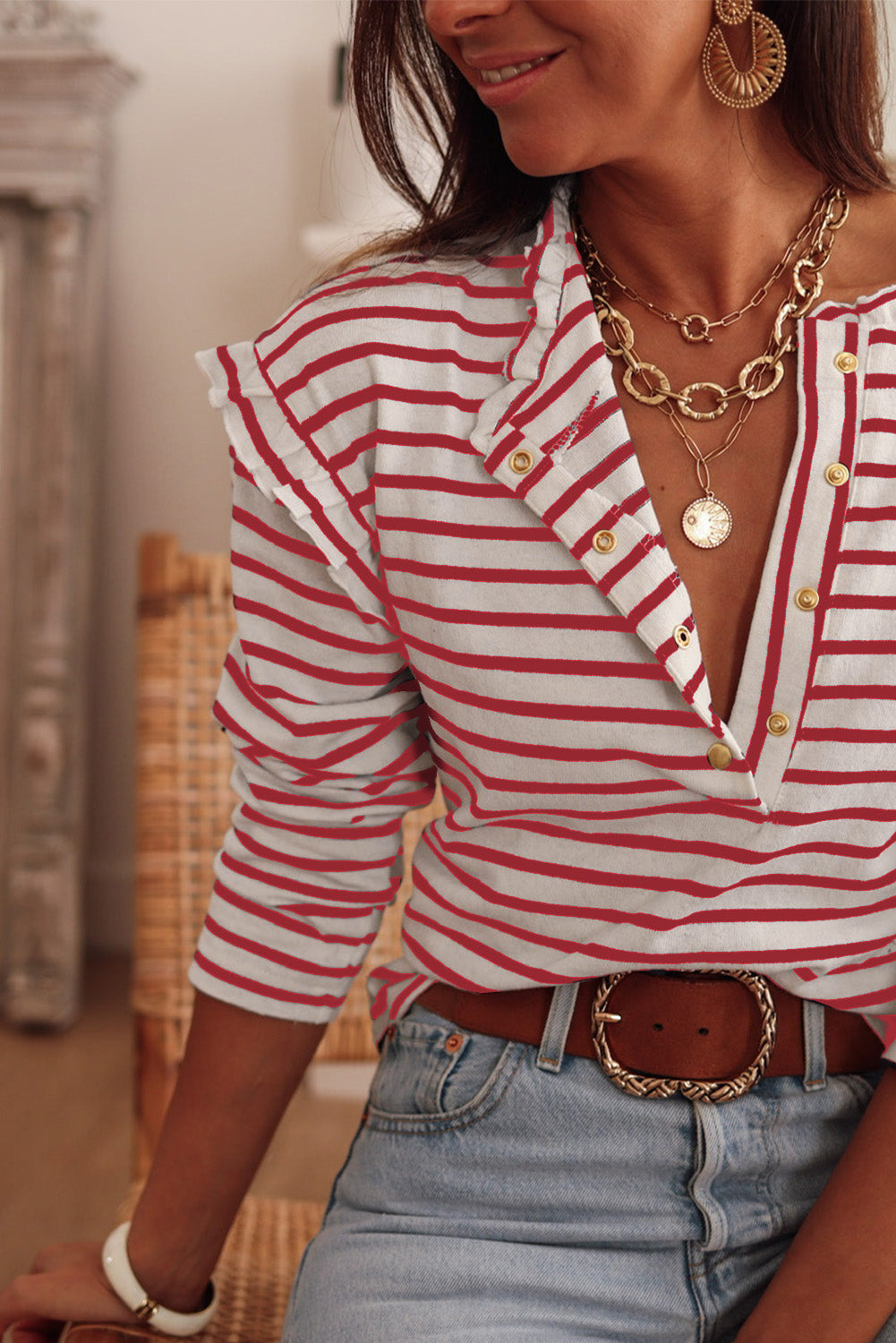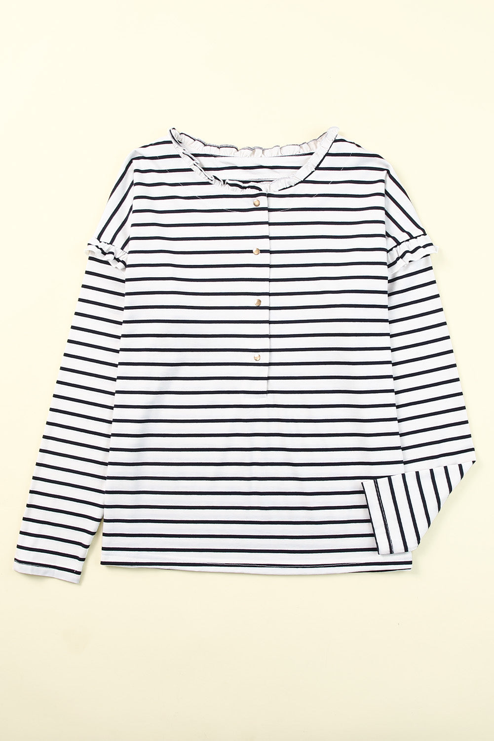 Haut à manches longues boutonné à volants et imprimé rayé