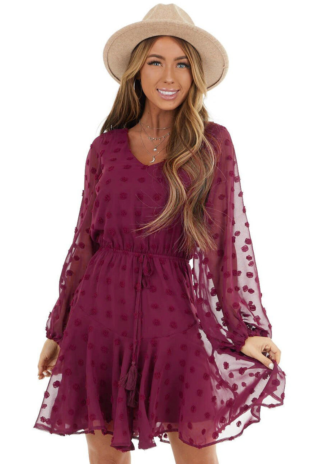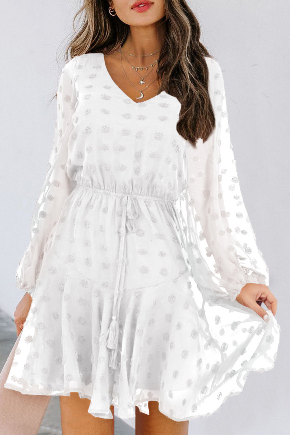 Mini-robe à manches longues et à pois suisses avec lien à la taille