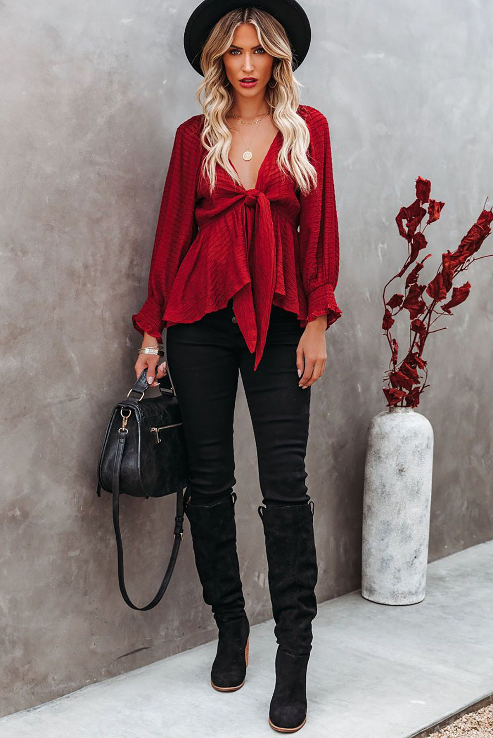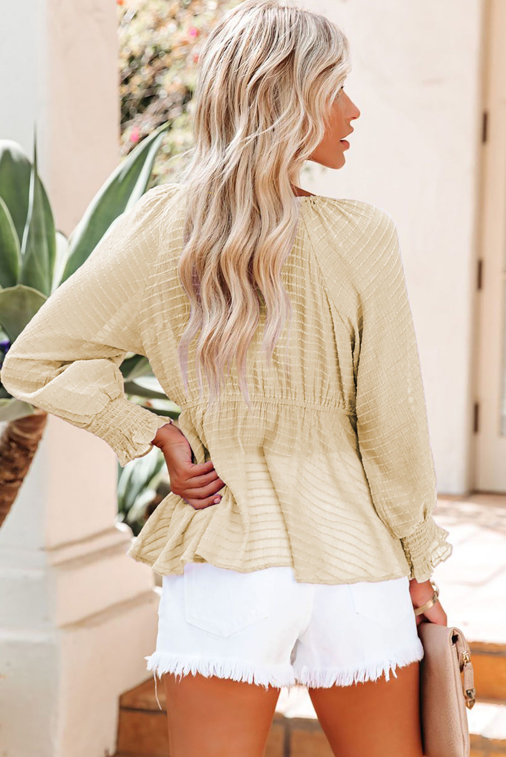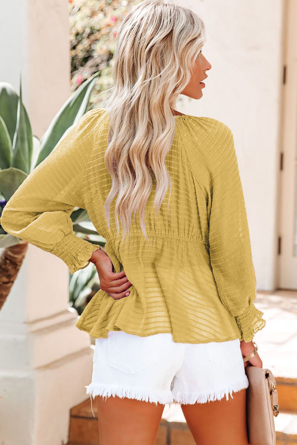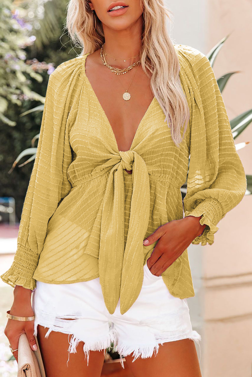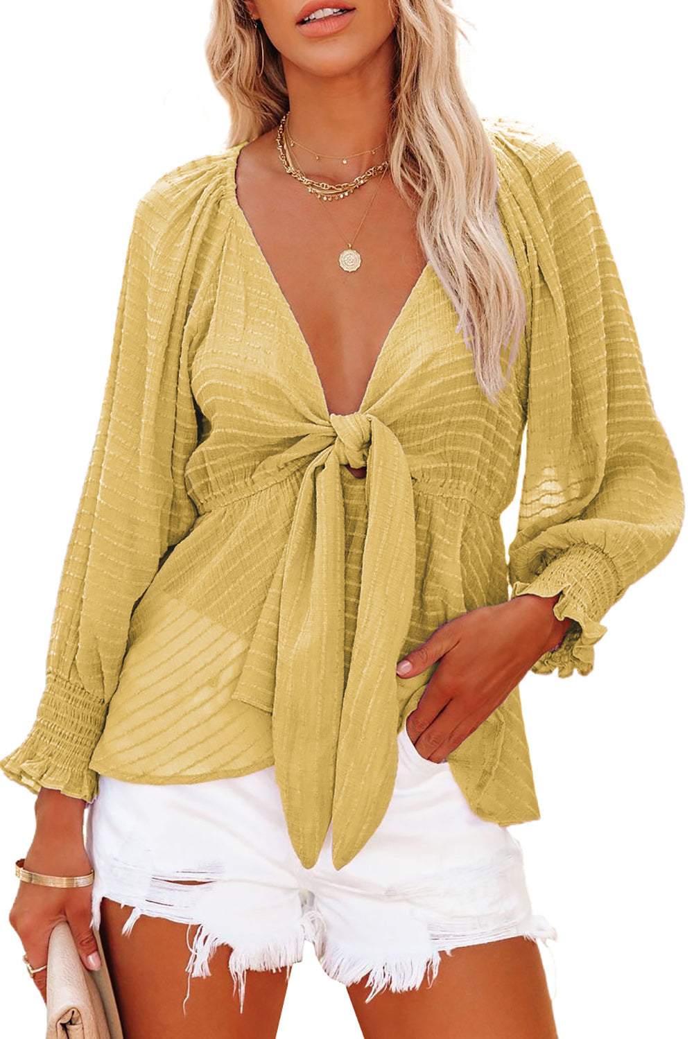 Chemisier péplum texturé noué sur le devant