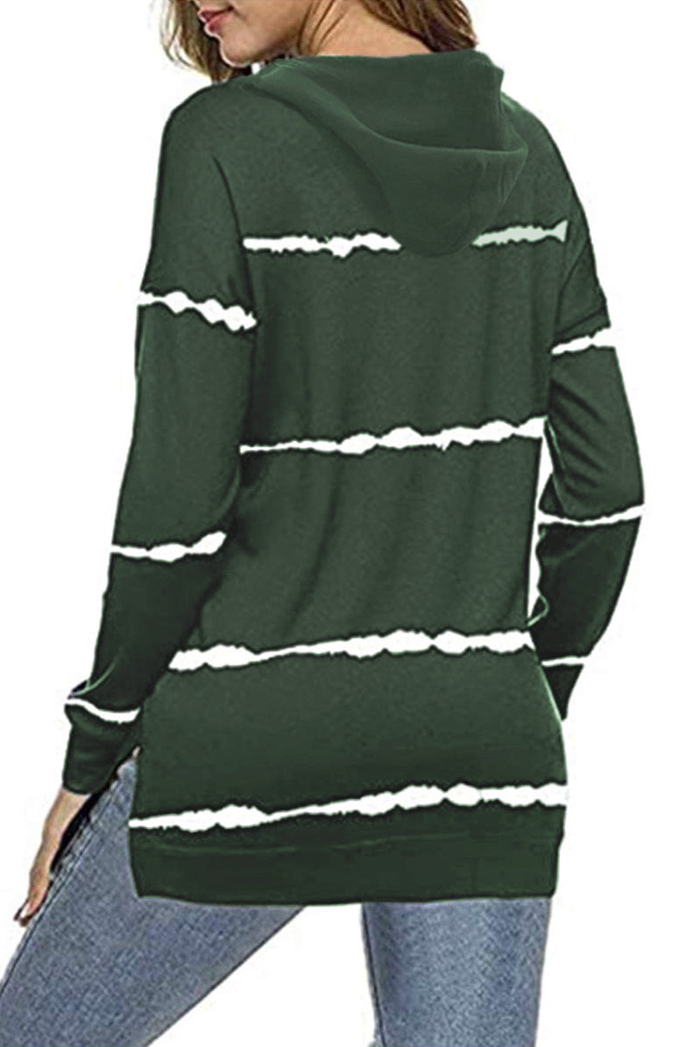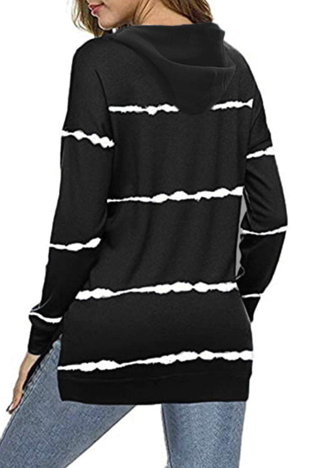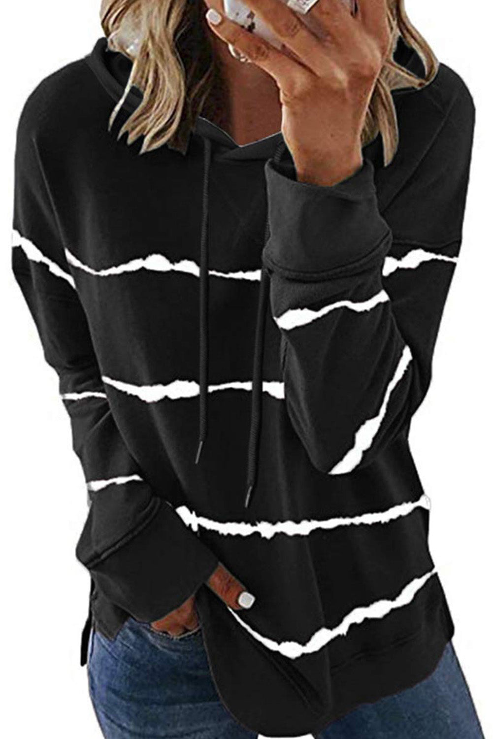 Sweat à capuche rayé tie-dye avec cordon de serrage et fente latérale