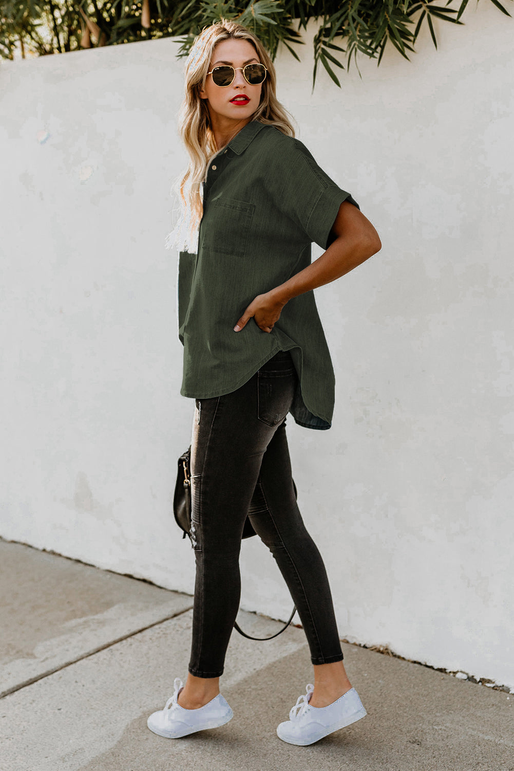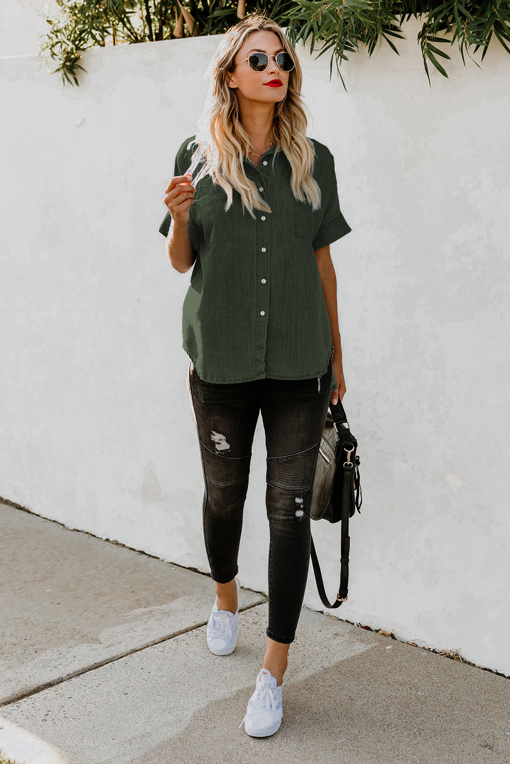 •Cette chemise en jean à manches courtes a un style boyfriend chic et cool