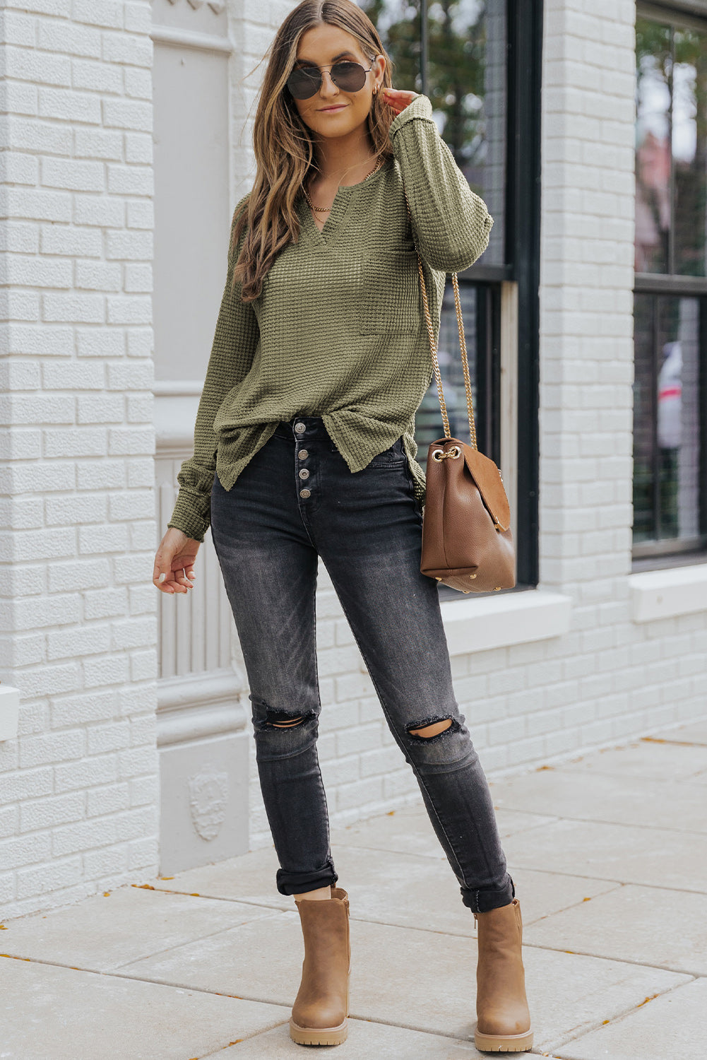 Haut ample en tricot gaufré à col fendu et poches