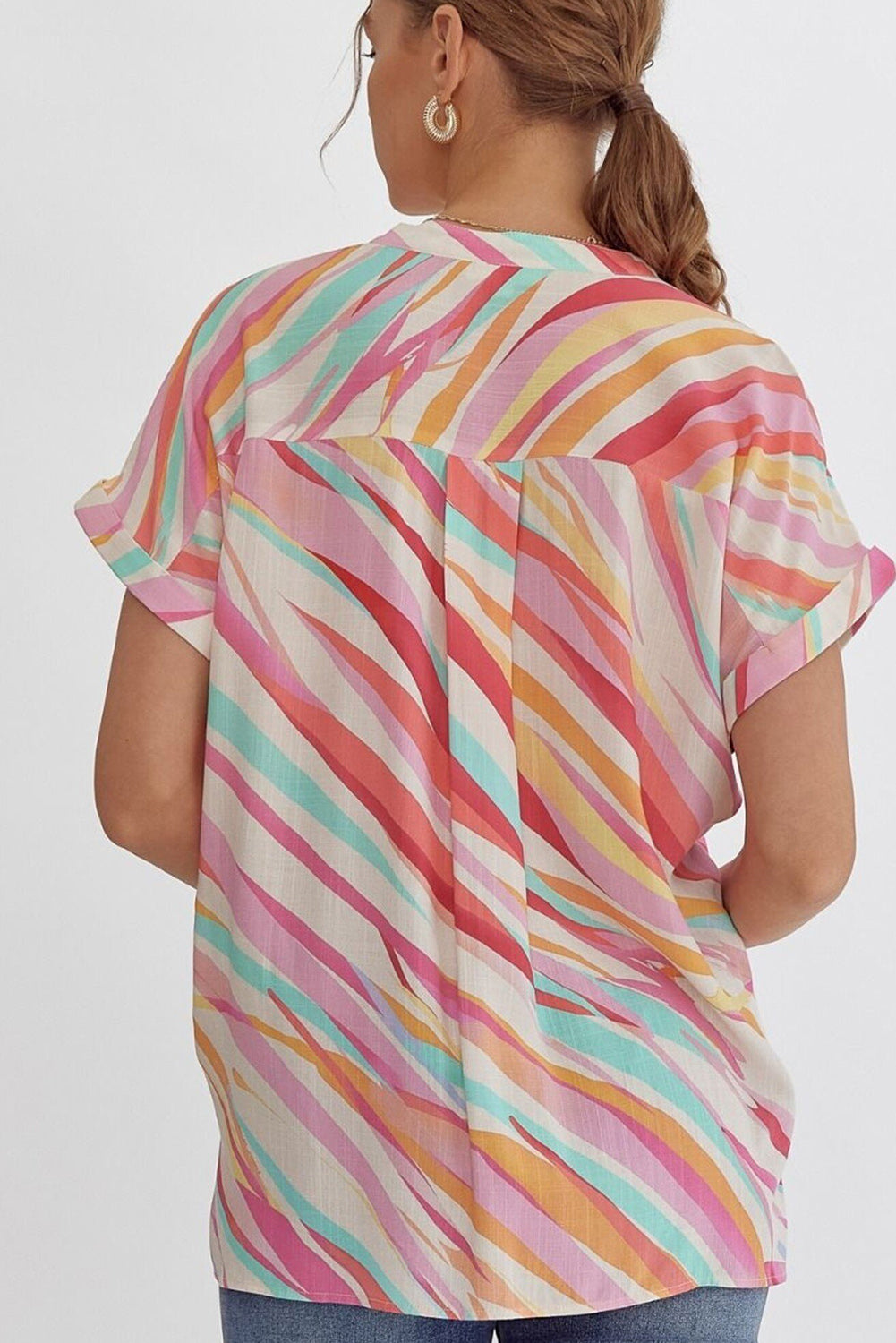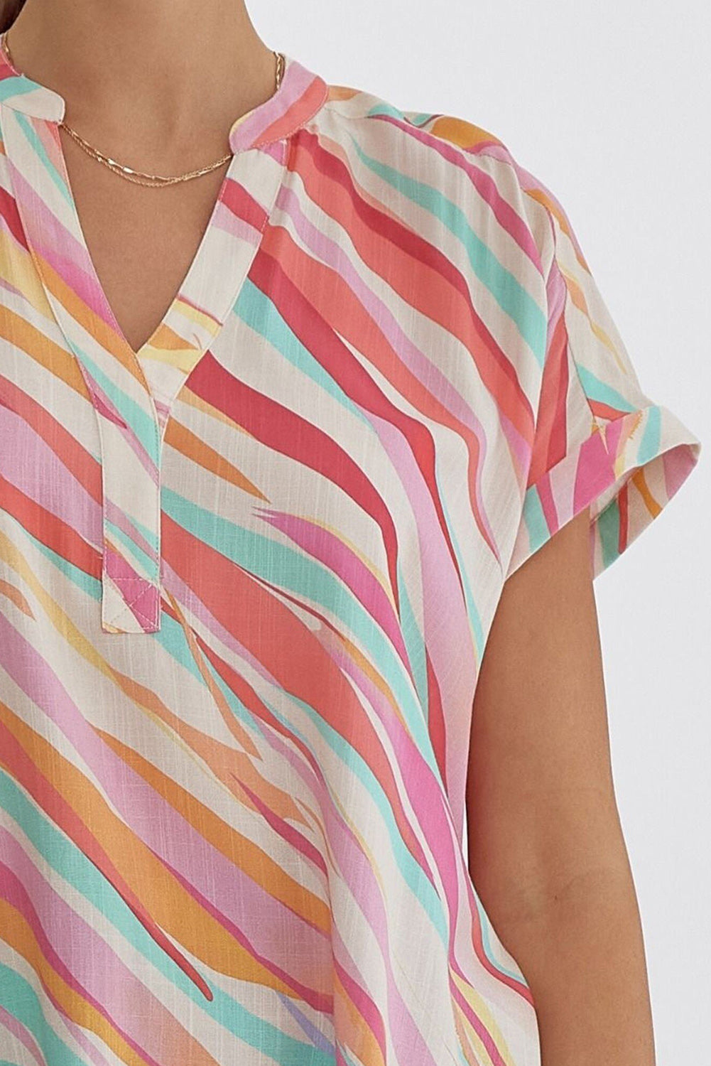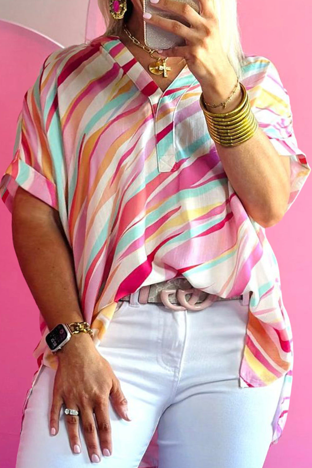 The White Abstract Print Short Sleeve Notched Neck Plus Size Top is extremely essential. It fits well and I can wear it on multiple occasions. Highly recommended!
