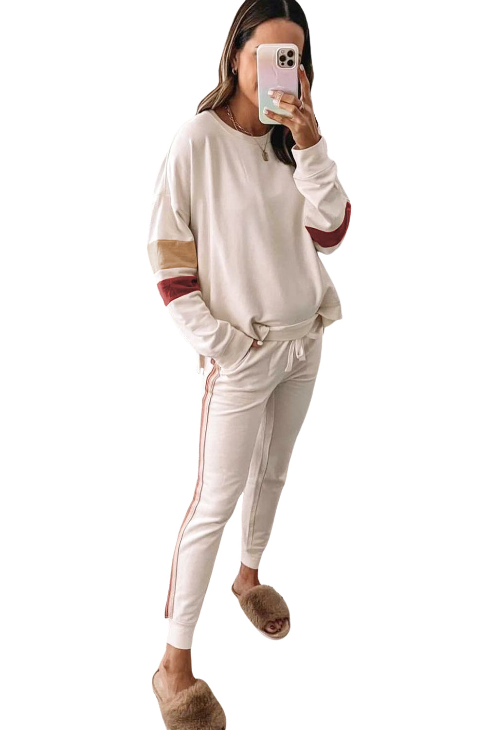 Ensemble de détente blanc à manches contrastées et coutures latérales