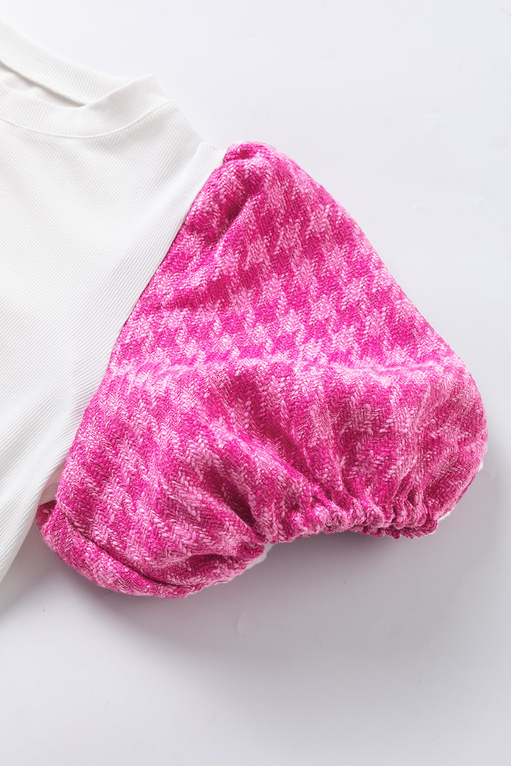- Le tweed luxueux donne à ce haut une touche sophistiquée