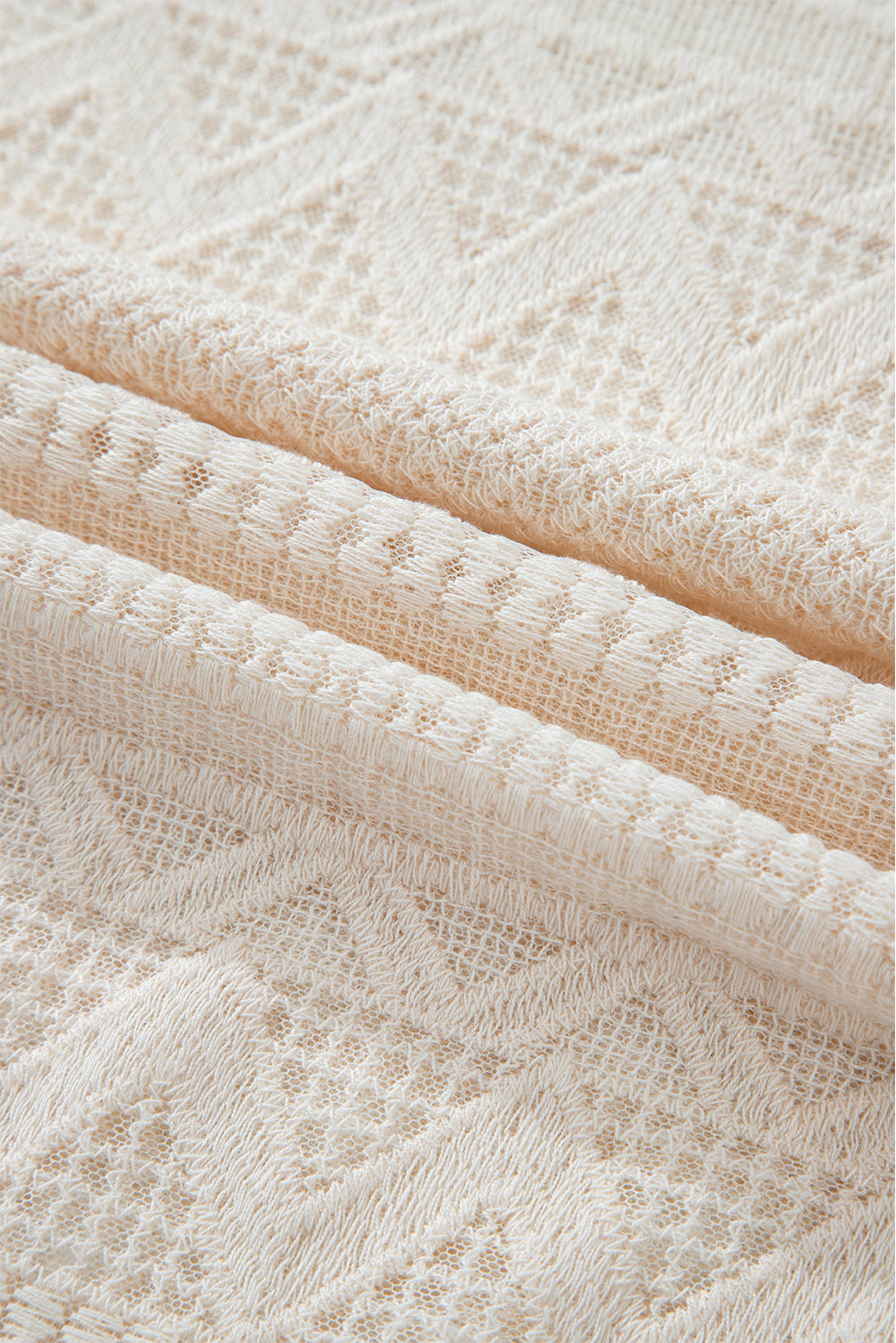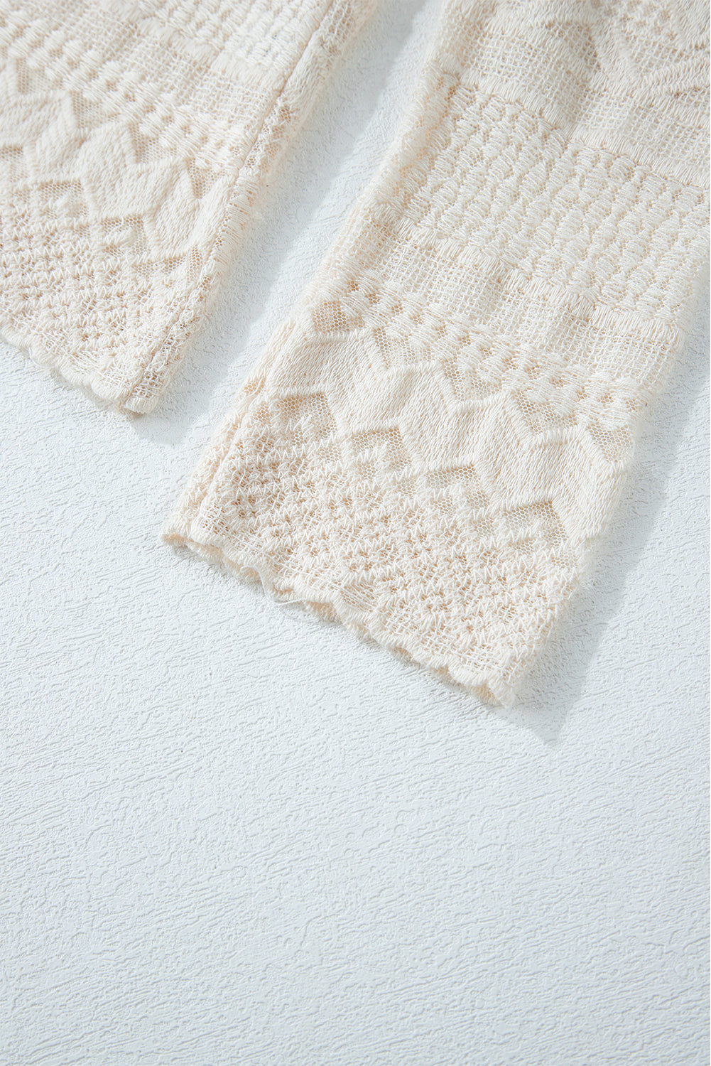 Chemisier blanc à manches longues et boutons en dentelle géométrique