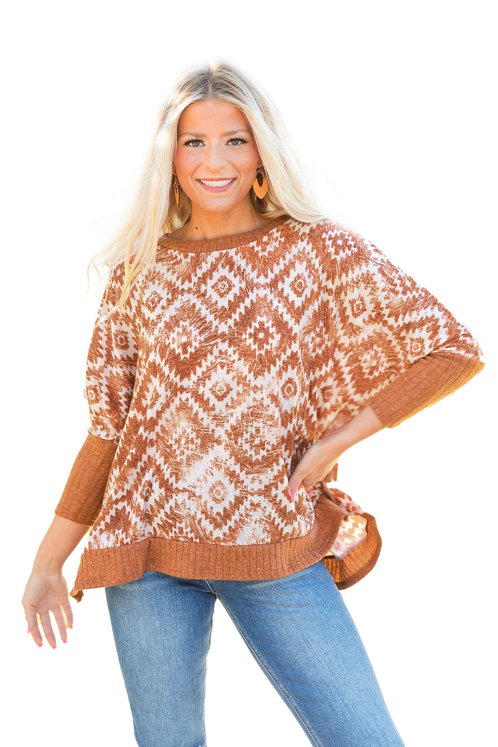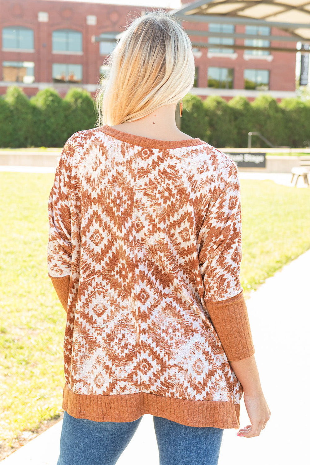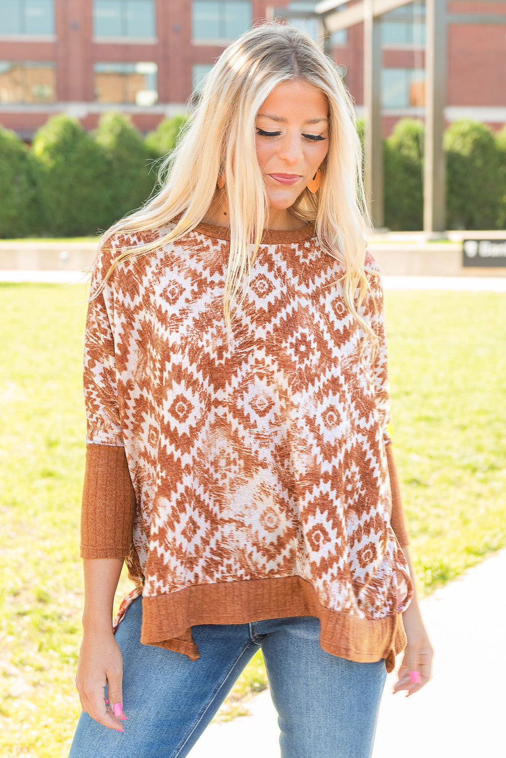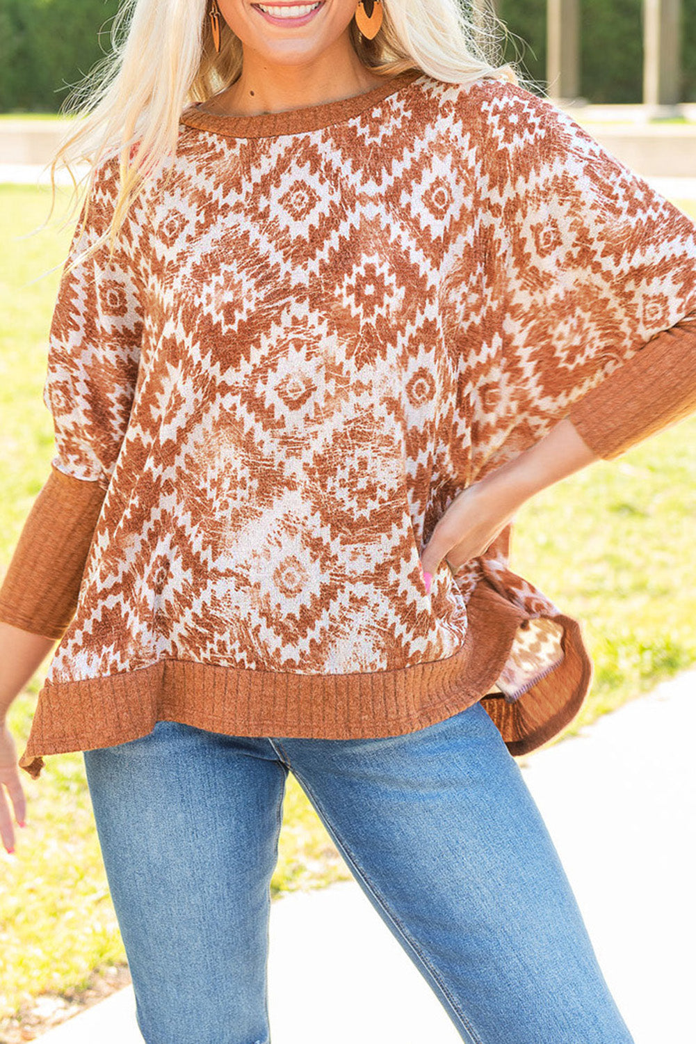 - Le motif aztèque ajoute une touche vibrante et bohème au chemisier imprimé