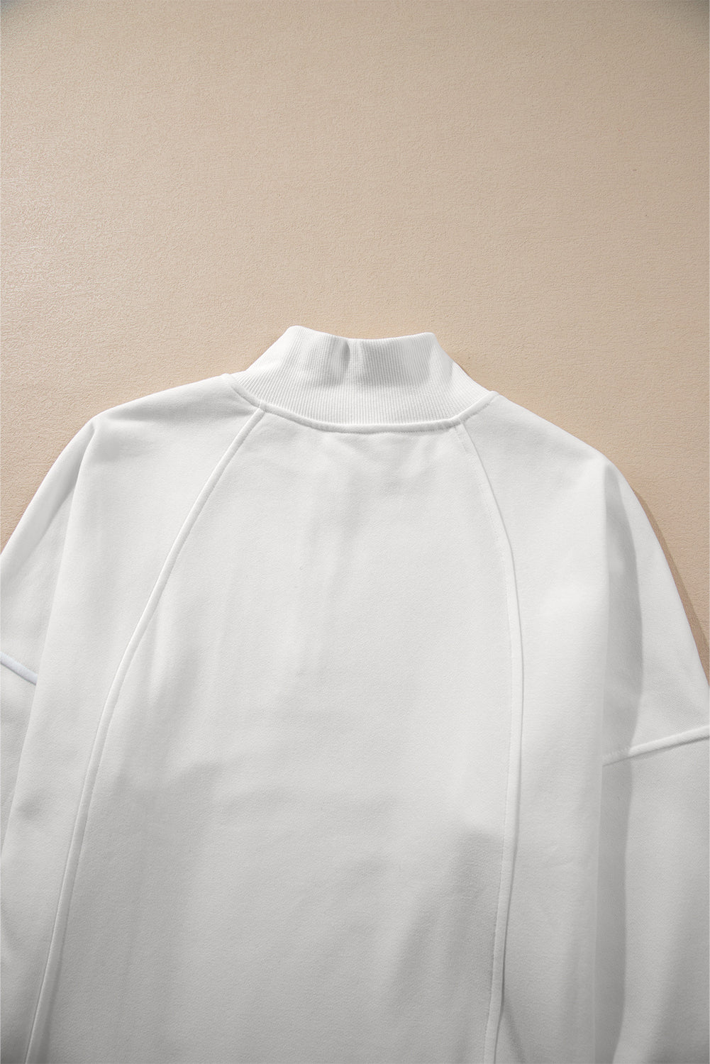Sweat-shirt blanc à col zippé et épaules tombantes