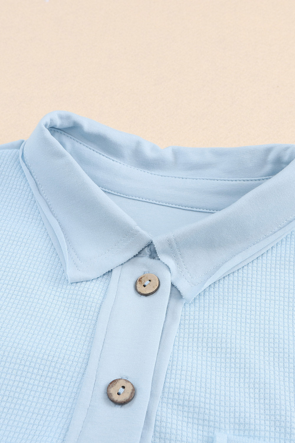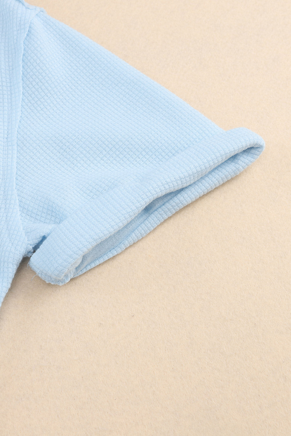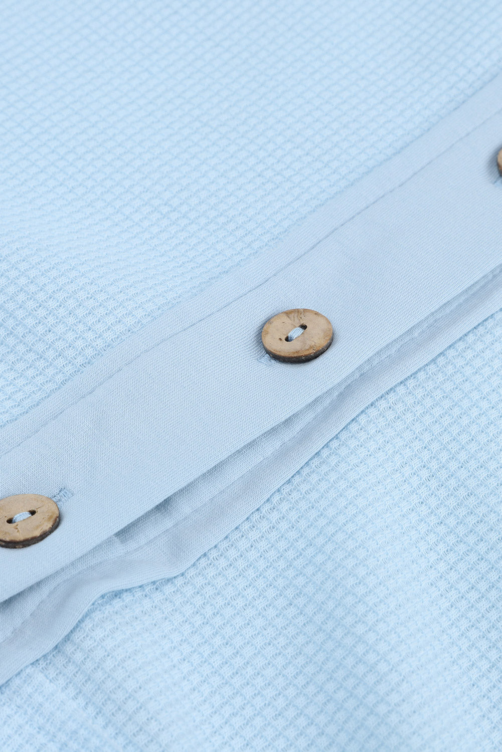 Acid Wash Waffle Knit Short Sleeve Buttoned Shirt