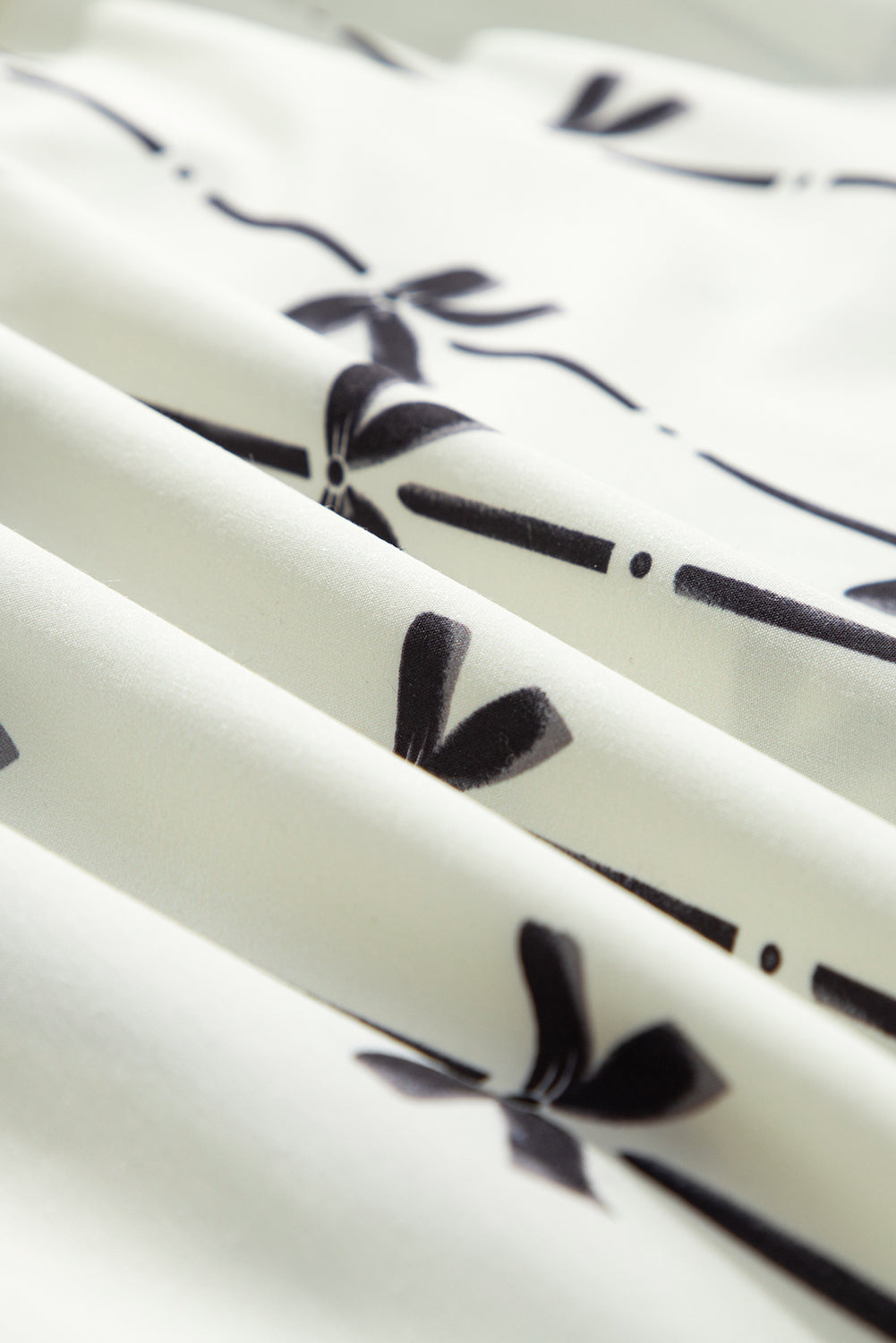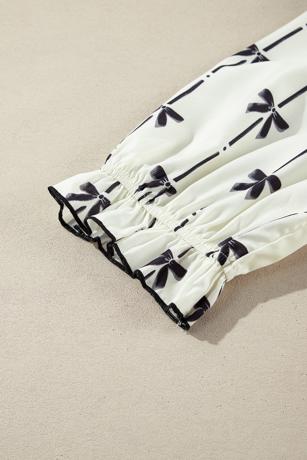 Apricot Bow Printed Puff Sleeve Ruffled Plus Size Mini Dress