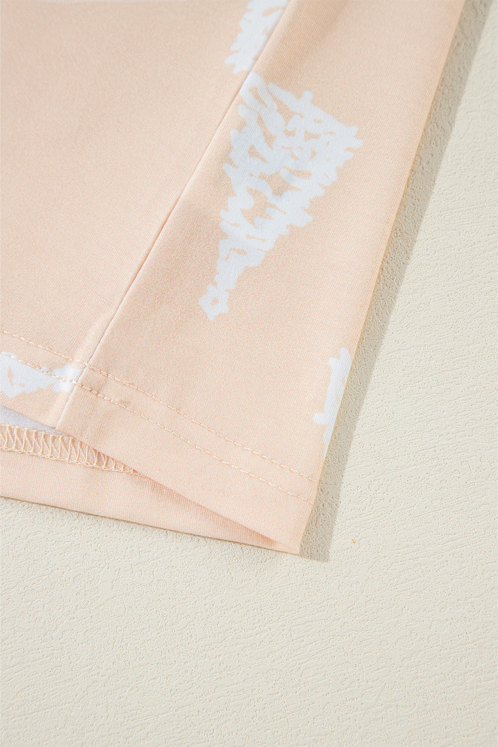 Apricot Christmas Tree Print Loose Fit Two Piece Pajama Set