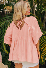 Apricot Pink Plus Size Textured Wide Short Sleeve Babydoll Blouse