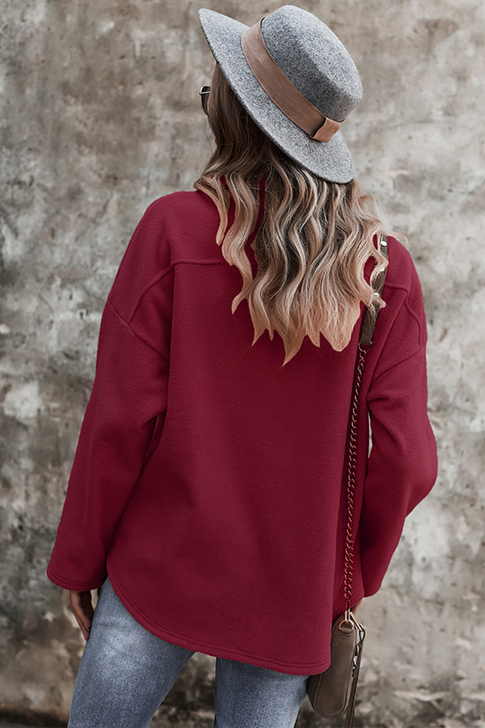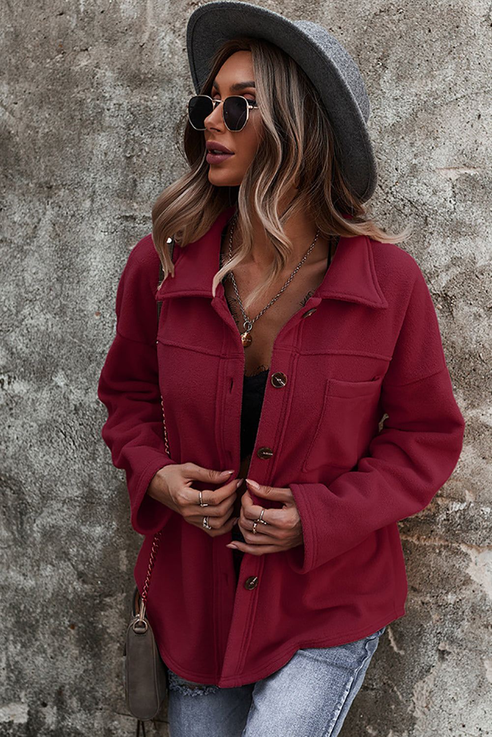 Army Green Turn Down Collar Pocket Button Closure Warm Coat