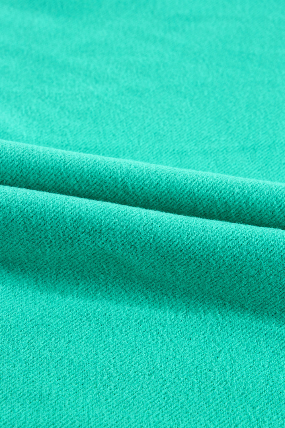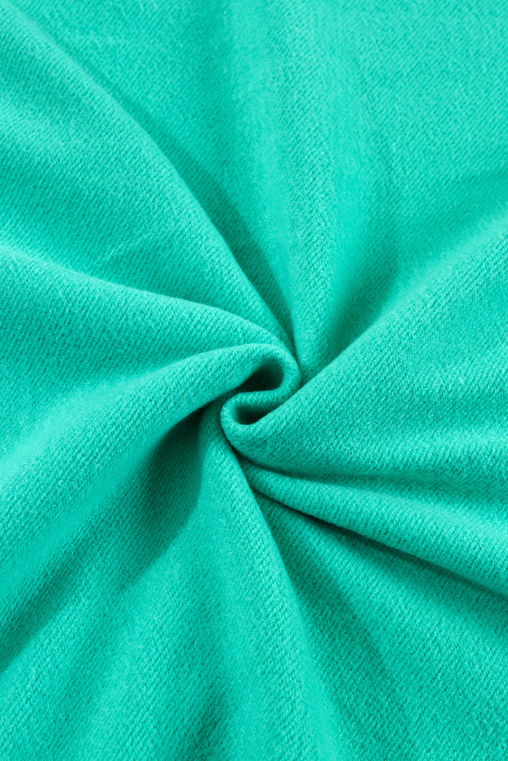 Aruba Blue Fleece Lined Half Zipper Kangaroo Pockets Loose Hoodie