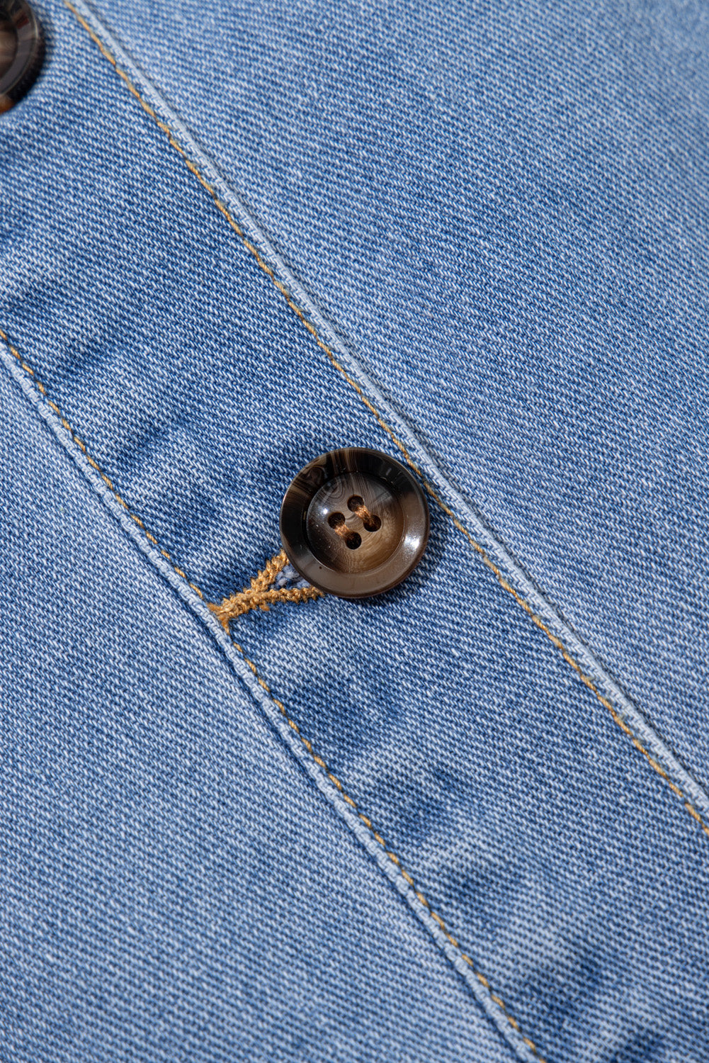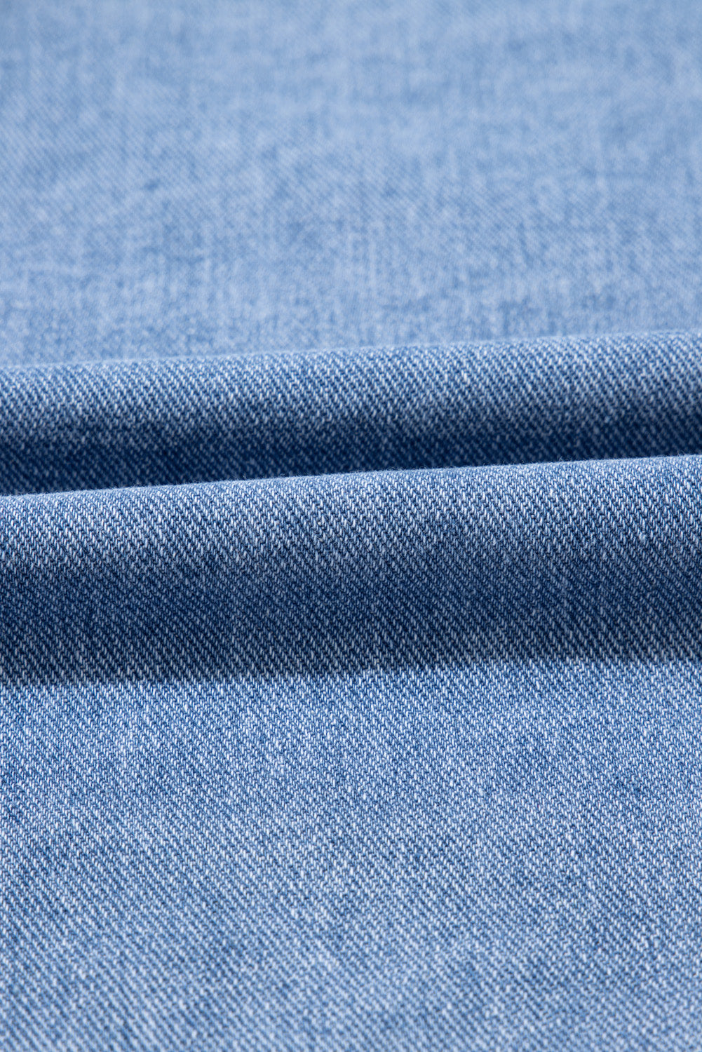 Beau Blue Wide Strap Button Front Pocketed Denim Mini Dress