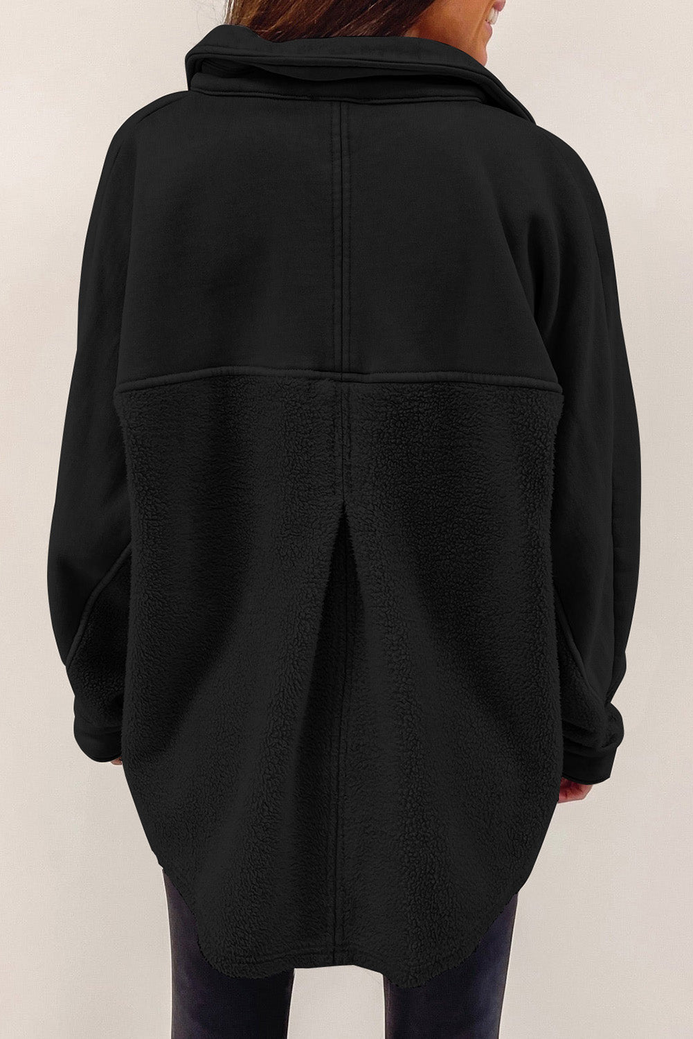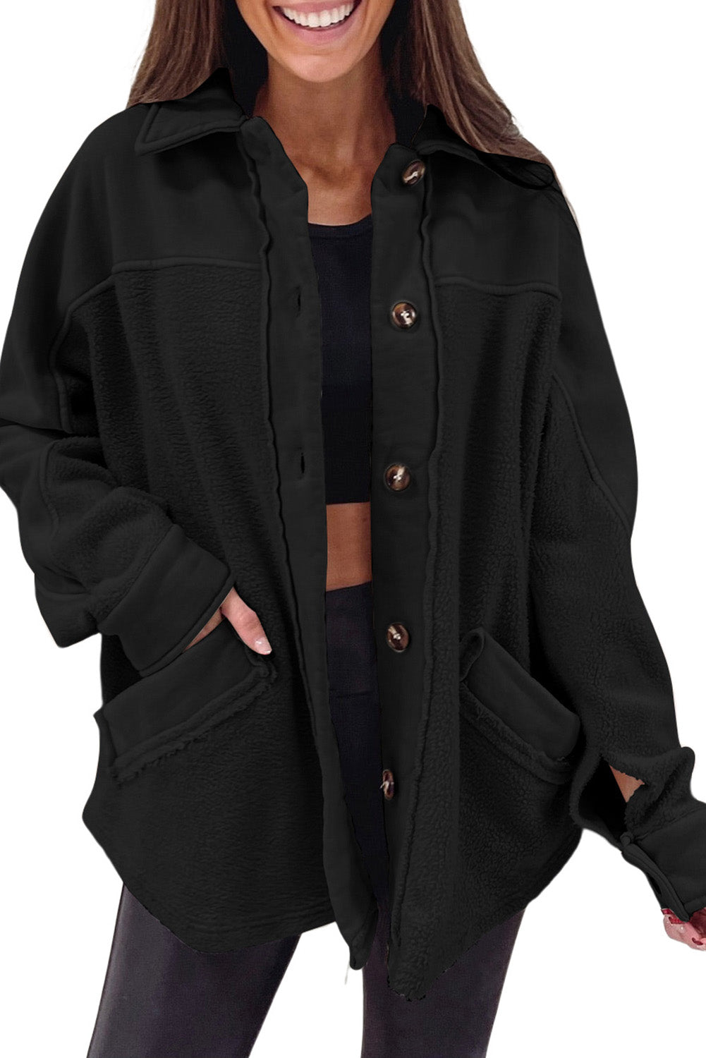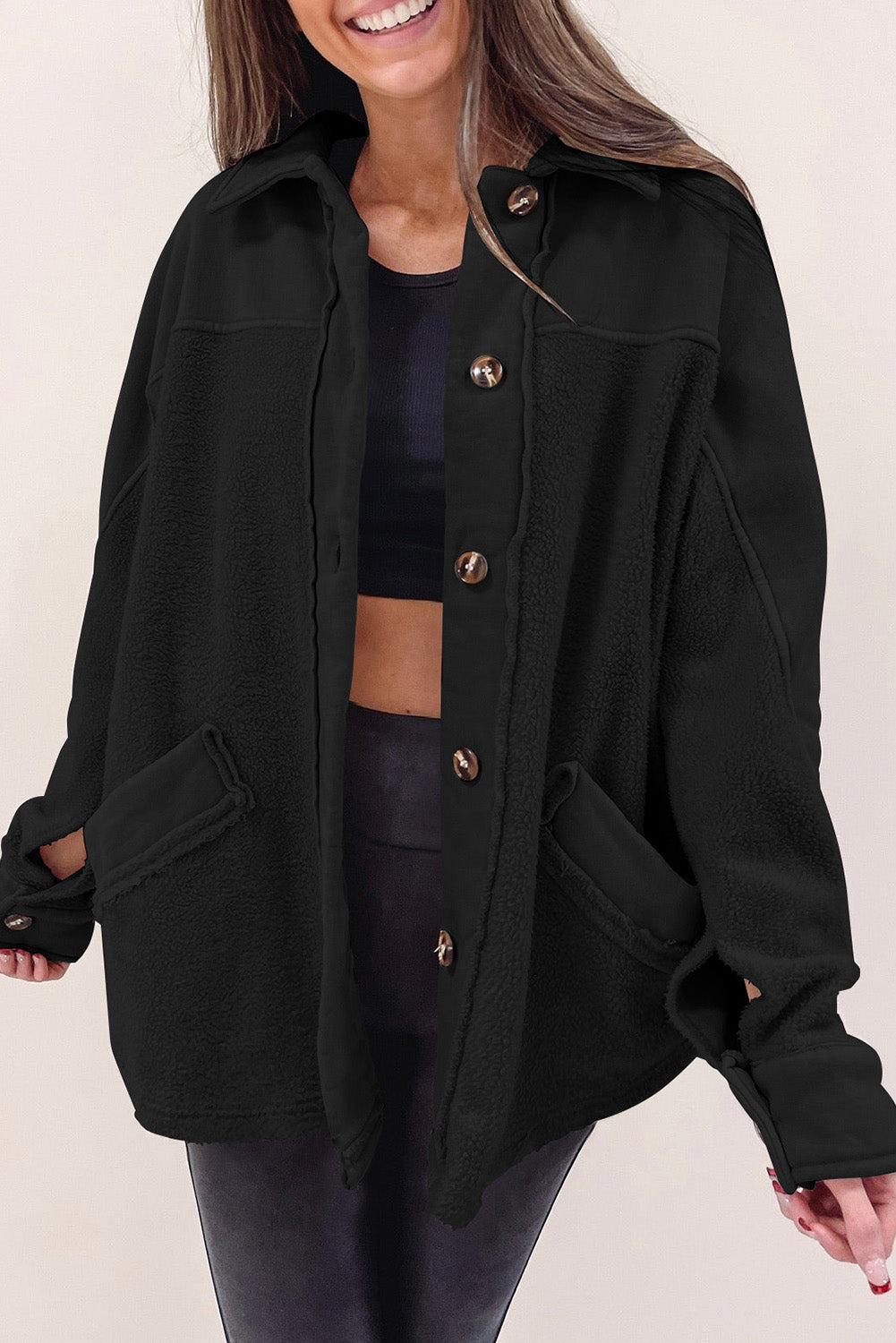Beige Button-Up Stitching Pocket Raw Hem Shacket