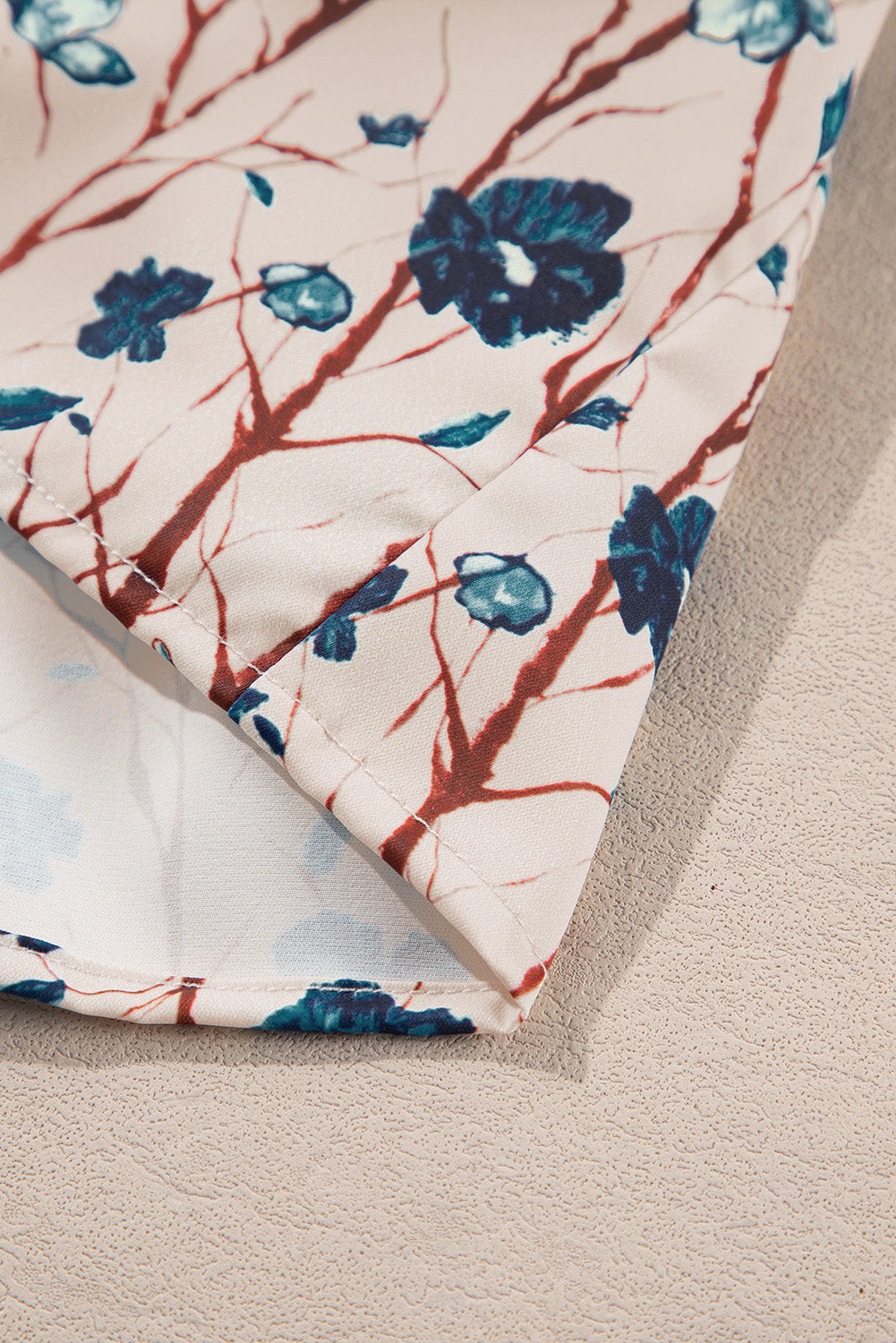 Beige Faux Two Piece Knit Patchwork Floral Print Plus Size Top