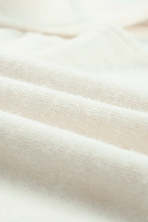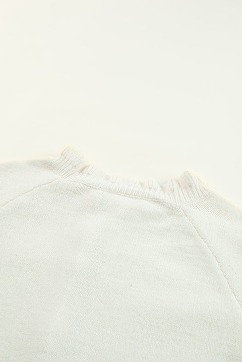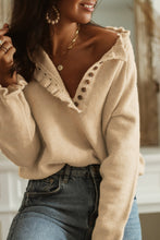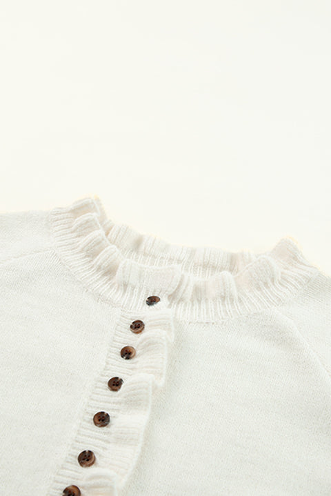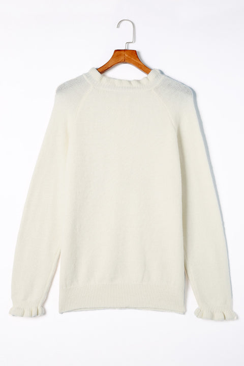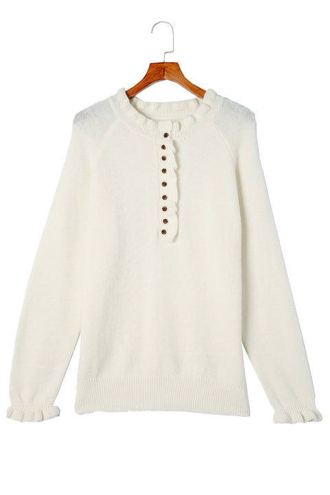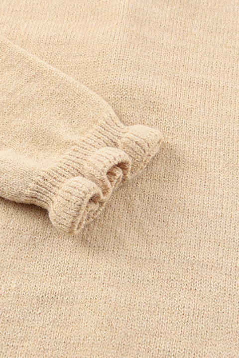 Beige Frill Trim Buttoned Knit Pullover Sweater