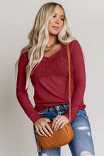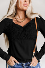 - Featured with v-neckline, long sleeves, lace panel, and slim fit